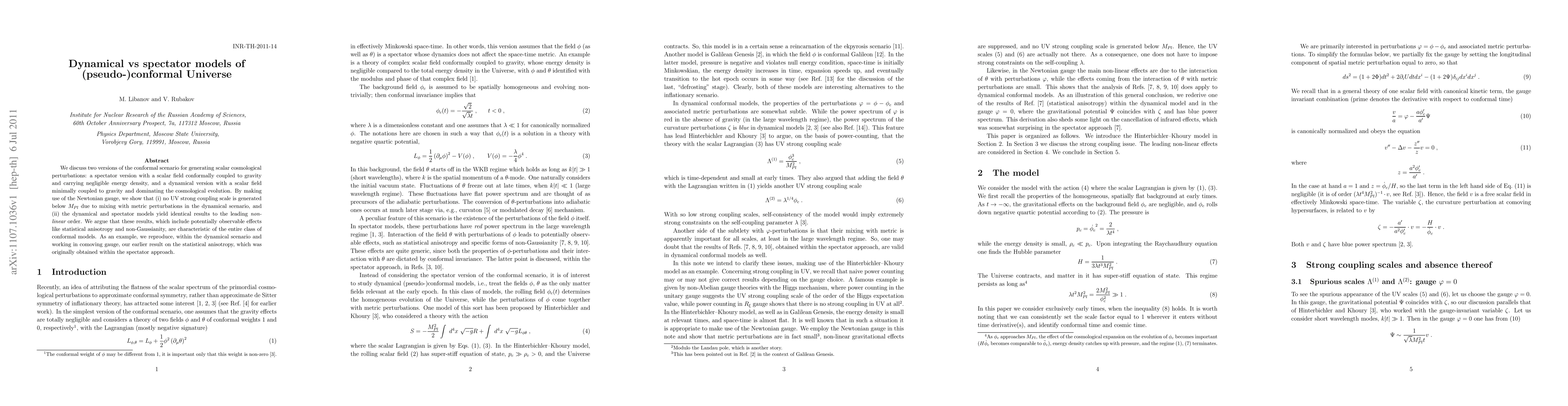 This paper compares two conformal models of the universe: one where a scalar field interacts with gravity (dynamical model), and another where it doesn't (spectator model). The authors find that both models produce similar results, including potentially observable effects like statistical anisotropy.