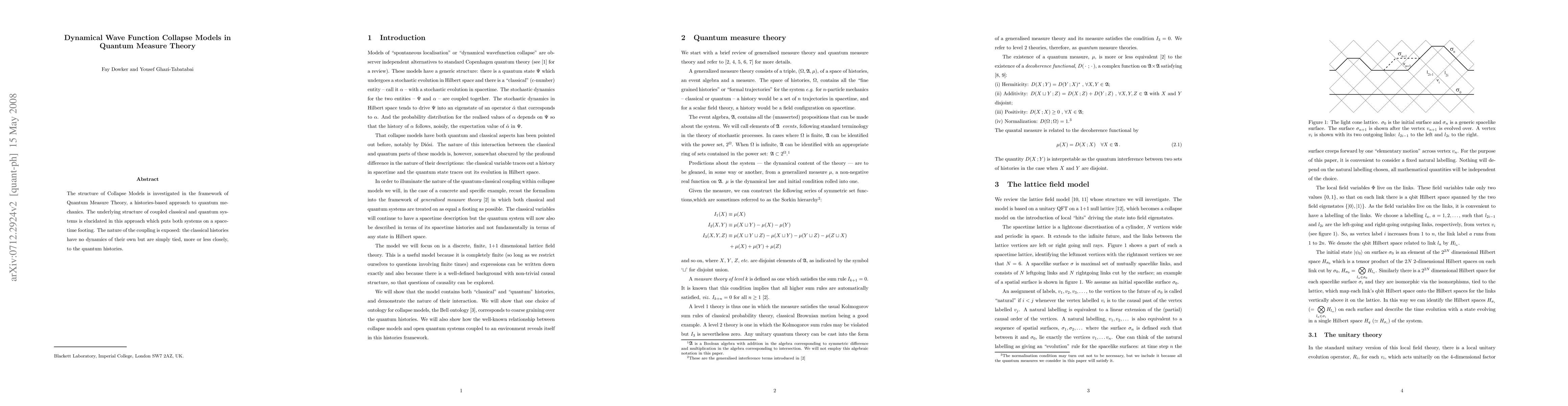 Research investigates the structure of Collapse Models in Quantum Measure Theory, revealing that classical histories are tied to quantum histories without their own dynamics. This approach puts both systems on a spacetime footing, exposing the nature of their coupling.