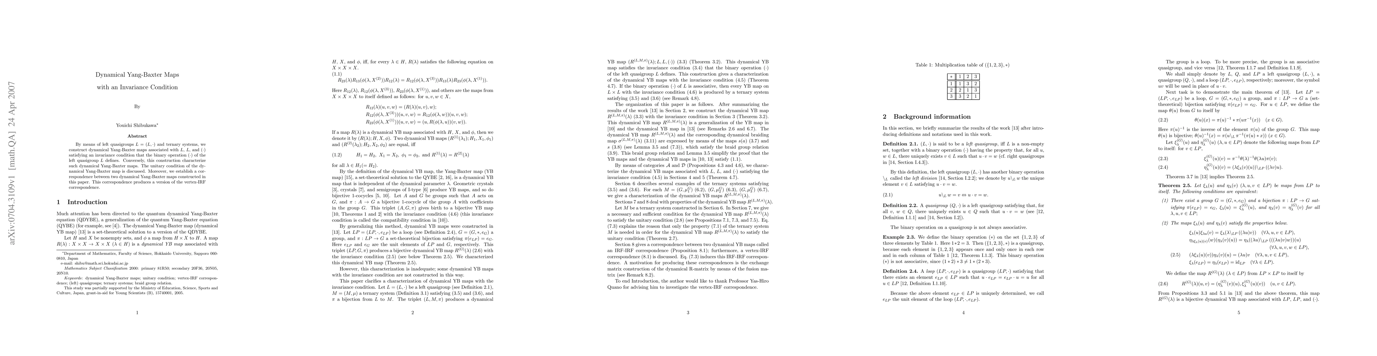 This paper constructs dynamical Yang-Baxter maps using left quasigroups and ternary systems, showing that these maps satisfy an invariance condition defined by the quasigroup's binary operation. It also establishes a correspondence between two such maps, yielding a version of the vertex-IRF correspondence.