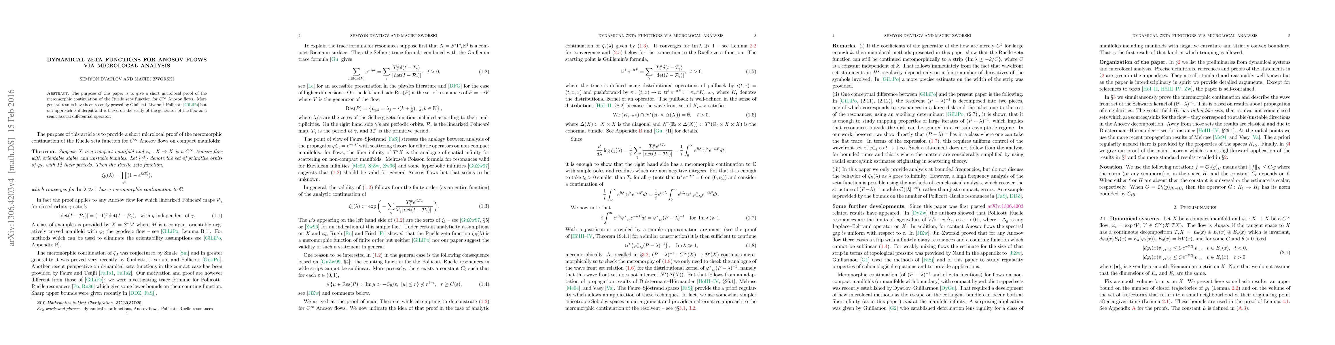 This paper presents a microlocal proof for the meromorphic continuation of the Ruelle zeta function for smooth Anosov flows, contrasting with previous work by Giulietti-Liverani-Pollicott, by analyzing the flow's generator as a semiclassical differential operator.