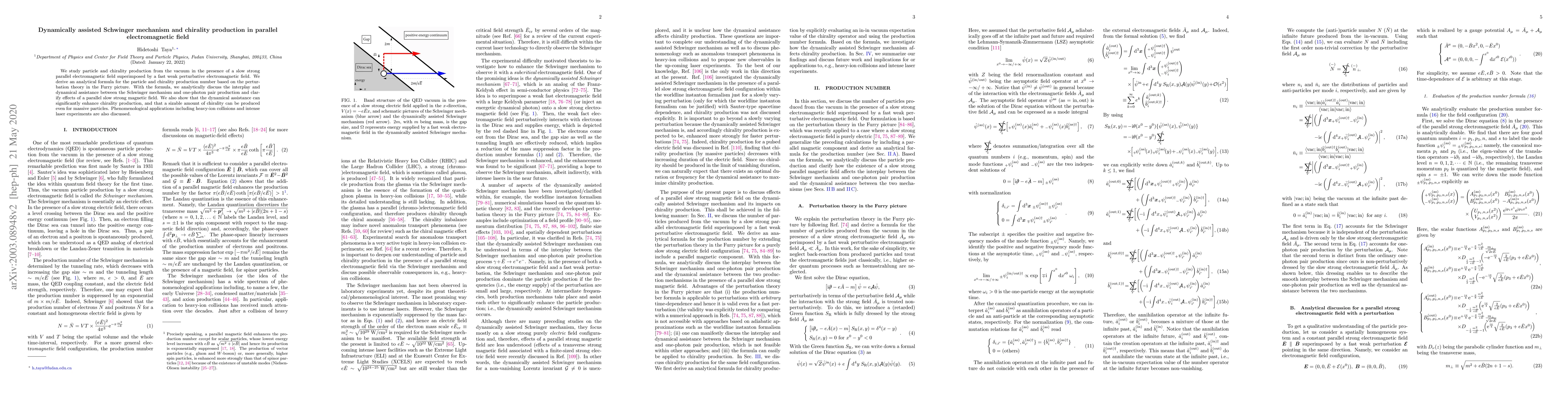 Researchers studied particle production from vacuum in strong parallel electromagnetic field, finding that a slow magnetic field enhances chirality production and can create significant amounts of chirality even for massive particles.