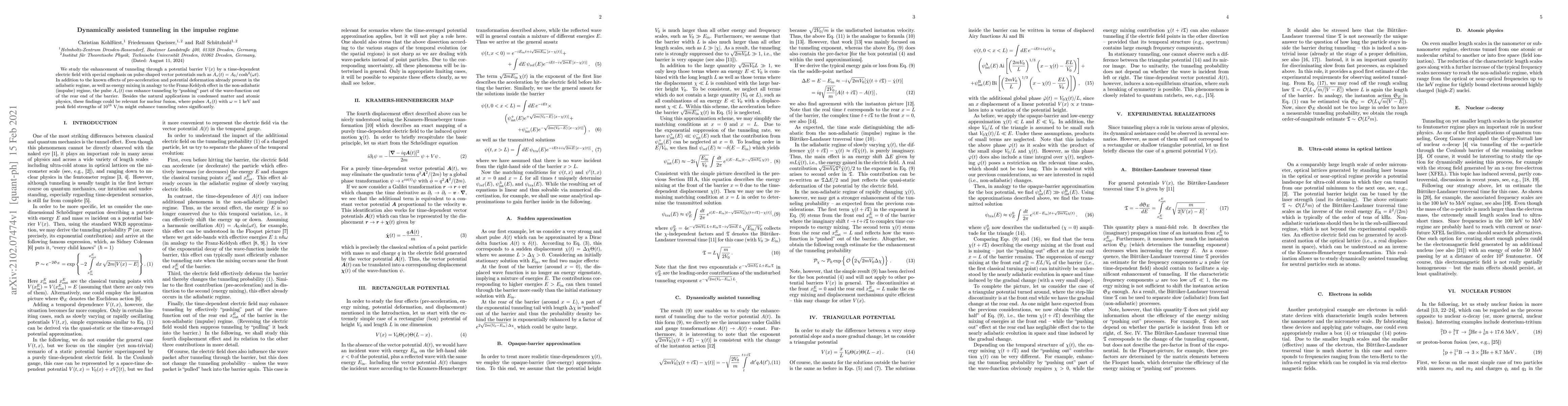 We study the enhancement of tunneling through a potential barrier $V(x)$ by a time-dependent electric field with special emphasis on pulse-shaped vector potentials such as $A_x(t)=A_0/\cosh^2(\omega t)$. In addition to the known effects of pre-acceleration and potential deformation already present in the adiabatic regime, as well as energy mixing in analogy to the Franz-Keldysh effect in the non-adiabatic (impulse) regime, the pulse $A_x(t)$ can enhance tunneling by ``pushing'' part of the wave-function out of the rear end of the barrier. Besides the natural applications in condensed matter and atomic physics, these findings could be relevant for nuclear fusion, where pulses $A_x(t)$ with $\omega=1~\rm keV$ and peak field strengths of $10^{16}~\rm V/m$ might enhance tunneling rates significantly.