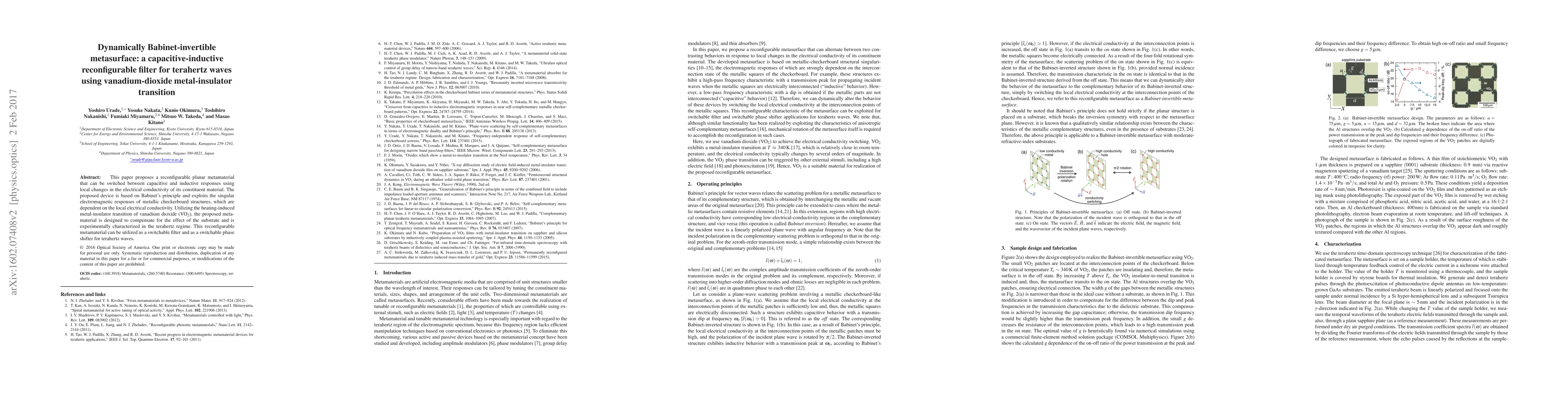 This paper introduces a dynamically reconfigurable metasurface that switches between capacitive and inductive responses via vanadium dioxide's metal-insulator transition, enabling it to function as a switchable filter and phase shifter for terahertz waves. The design leverages Babinet's principle and the material's unique electromagnetic responses.