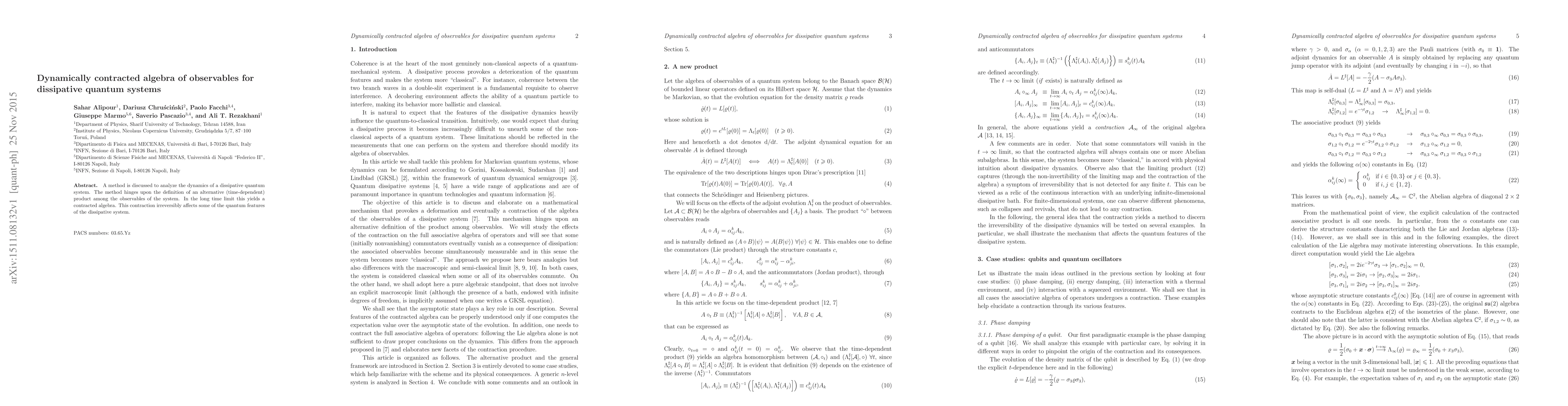 A method is discussed to analyze the dynamics of a dissipative quantum system. The method hinges upon the definition of an alternative (time-dependent) product among the observables of the system. In the long time limit this yields a contracted algebra. This contraction irreversibly affects some of the quantum features of the dissipative system.