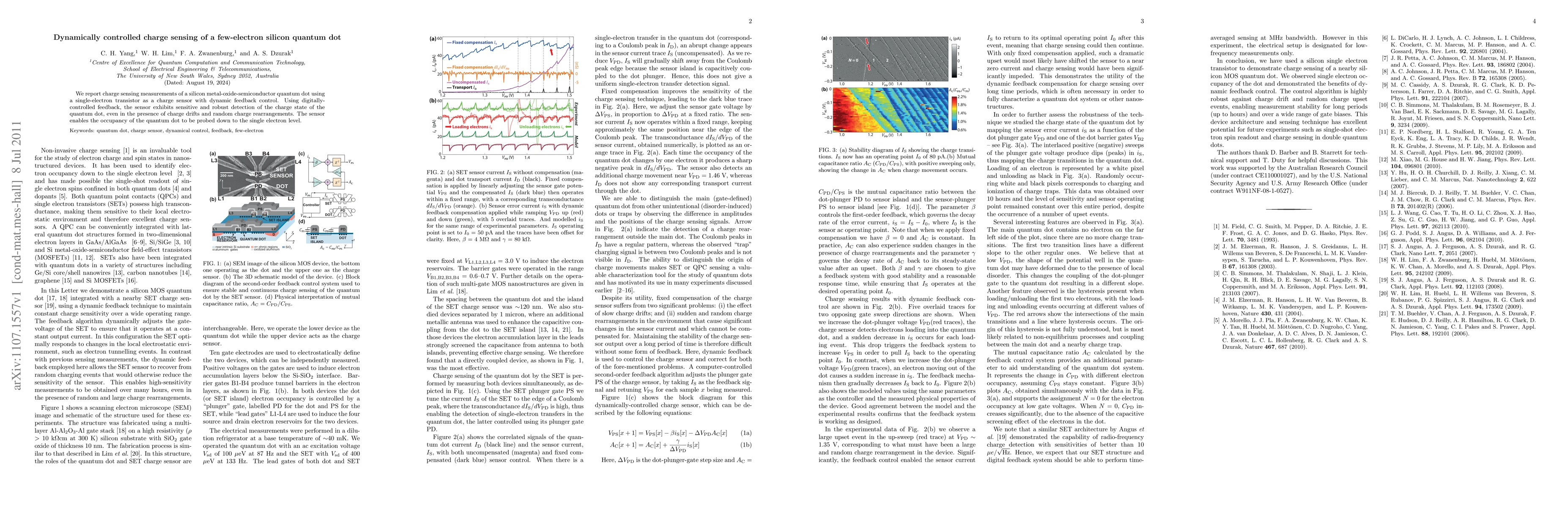 This study presents a dynamically controlled charge sensor for a silicon quantum dot utilizing a single-electron transistor with digital feedback, achieving sensitive and robust detection of the quantum dot's charge state, even amid drifts and rearrangements, down to the single electron level.