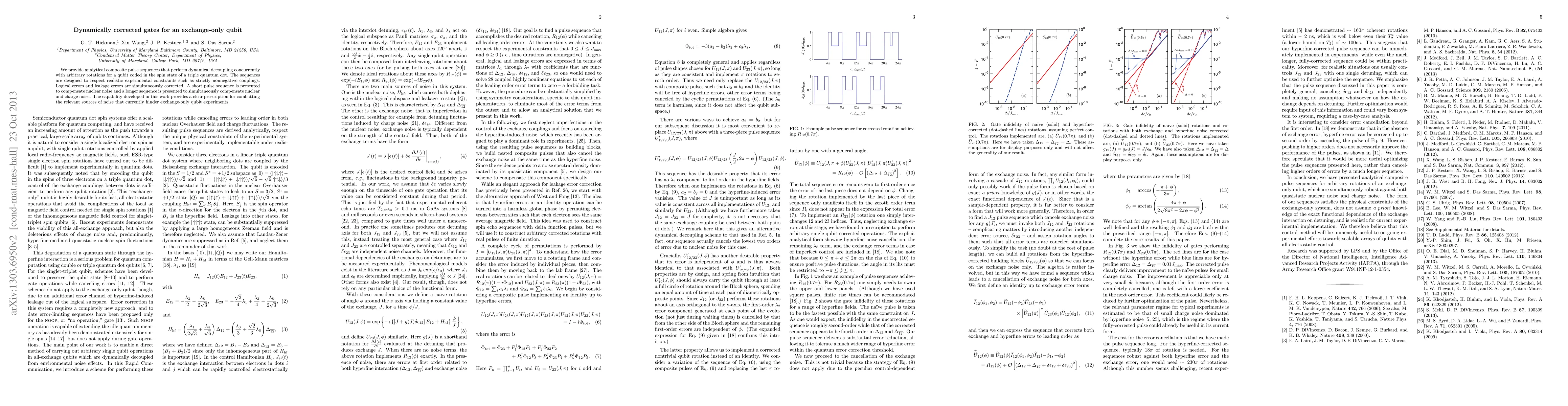 This paper presents analytical composite pulse sequences for dynamically correcting errors in an exchange-only qubit using a triple quantum dot, addressing both logical and leakage errors while compensating for nuclear and charge noise. This approach offers a robust method to mitigate noise sources that impede qubit performance.
