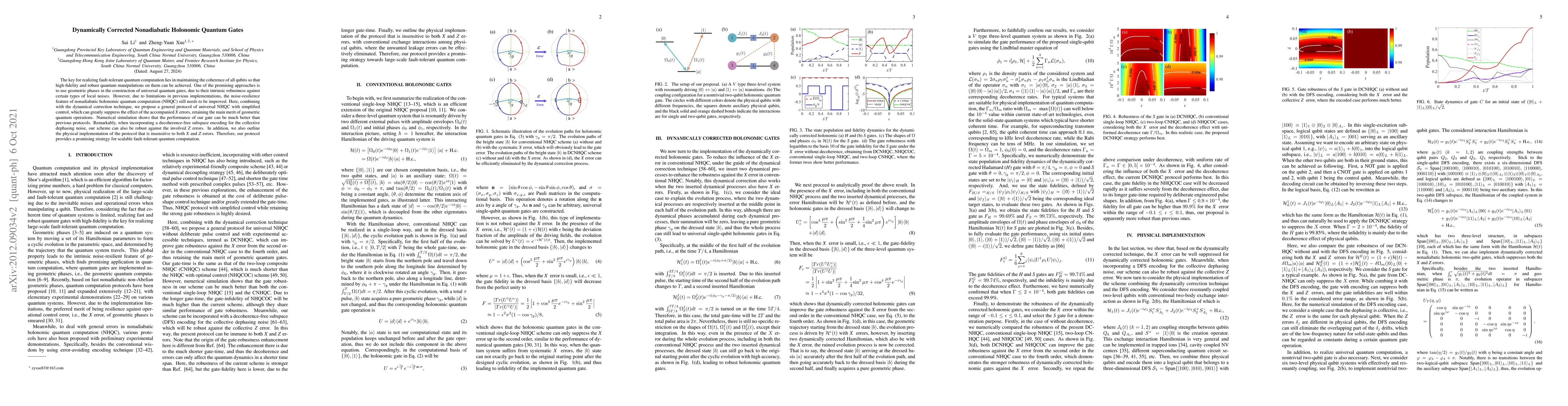 The research introduces a dynamically corrected NHQC protocol with simplified control that effectively suppresses X errors and, when combined with DFS encoding, also mitigates Z errors, providing a robust strategy for fault-tolerant quantum computation.