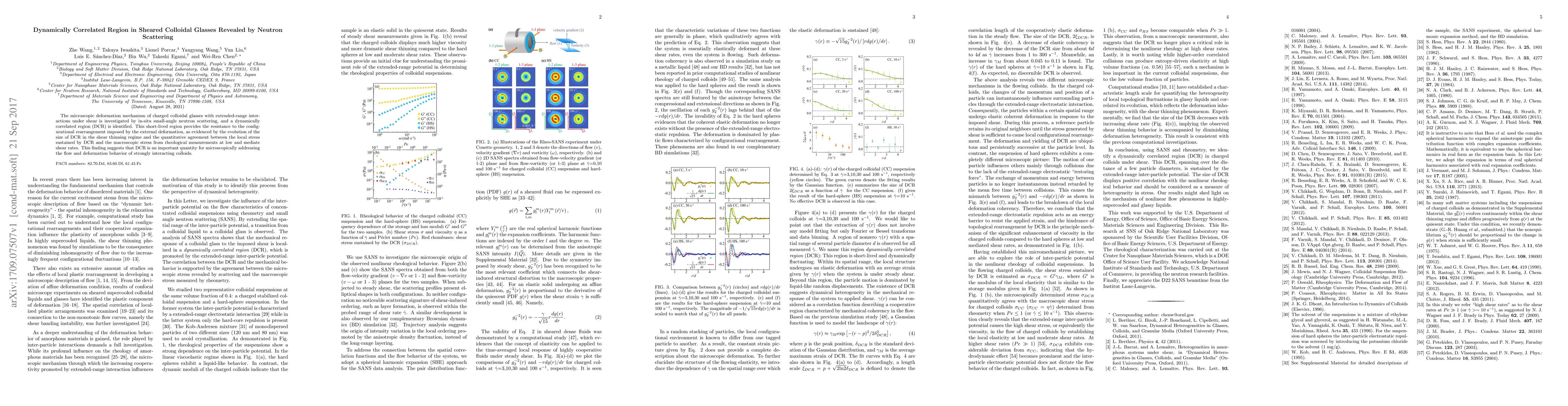 This study identifies a dynamically correlated region (DCR) in sheared colloidal glasses using in-situ neutron scattering, revealing its role in resisting configurational rearrangement under shear. The size of the DCR correlates with shear thinning and matches local stress with macroscopic stress, indicating its significance in understanding colloidal flow behavior.