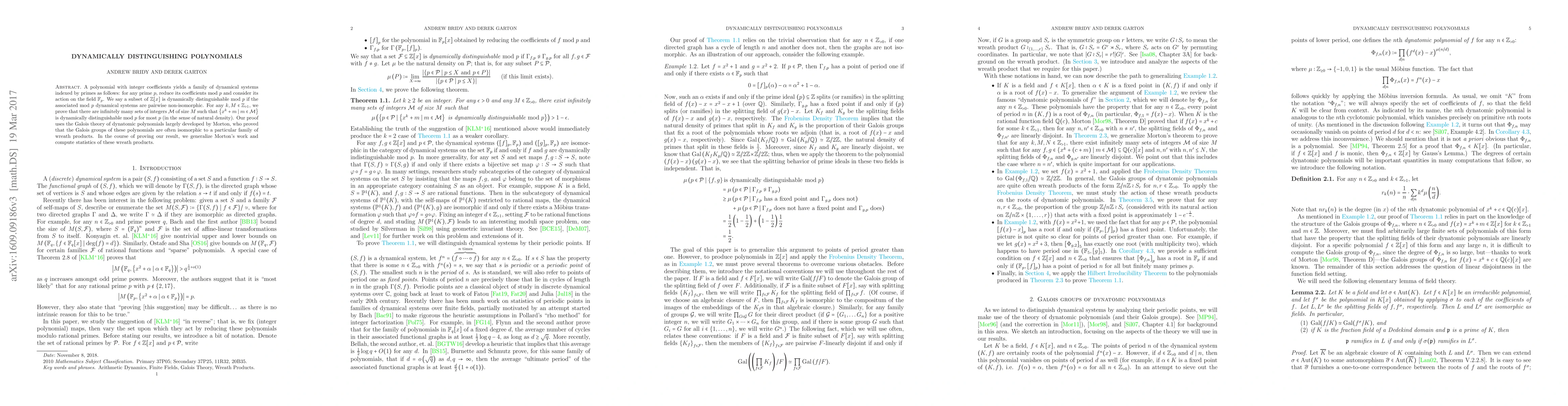 Researchers prove that there are infinitely many sets of integers that can create dynamically distinguishable polynomials for most primes, with a key contribution to Galois theory of dynatomic polynomials.