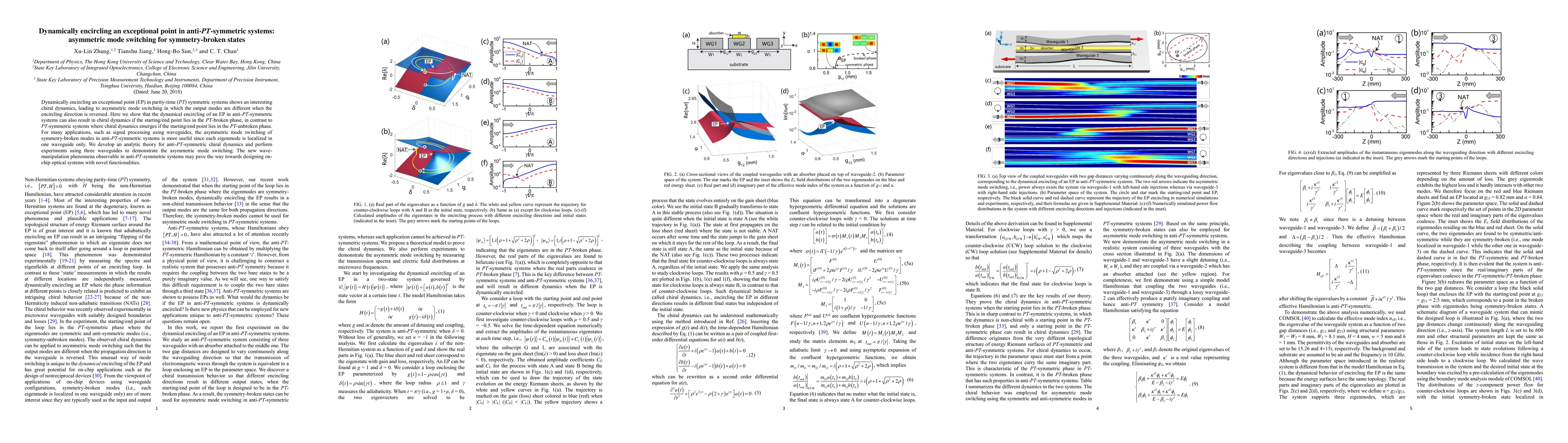 This paper explores the asymmetric mode switching in anti-PT-symmetric systems by dynamically encircling an exceptional point, demonstrating chiral dynamics in the PT-broken phase. The findings suggest potential applications in waveguide-based signal processing and introduce a new wave-manipulation phenomenon for on-chip optical systems.