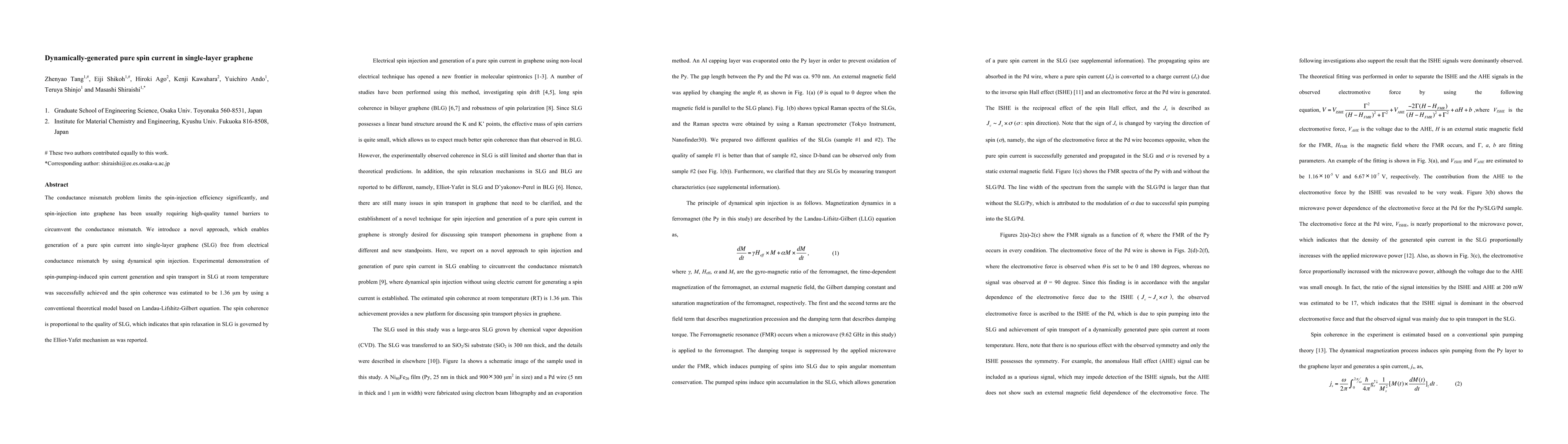 Researchers successfully generated a pure spin current in single-layer graphene without high-quality tunnel barriers, achieving room temperature spin transport with a spin coherence of 1.36 μm.
