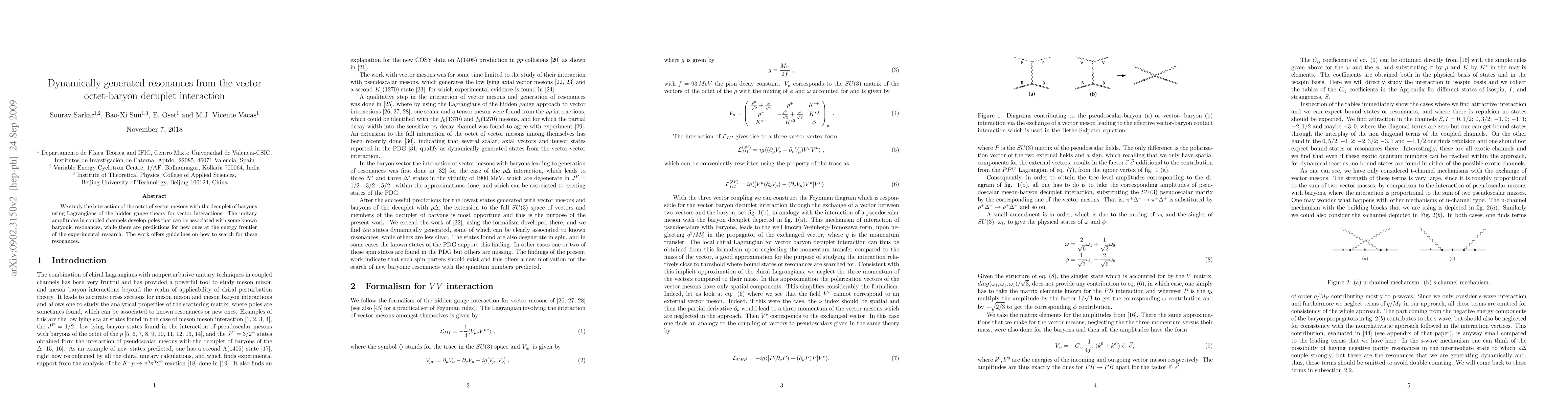 This research investigates the interaction between vector mesons and baryon decuplets using hidden gauge theory, revealing dynamically generated resonances that correspond to known baryonic resonances and predicting new ones for future experimental exploration. The study provides a framework for identifying these resonances.