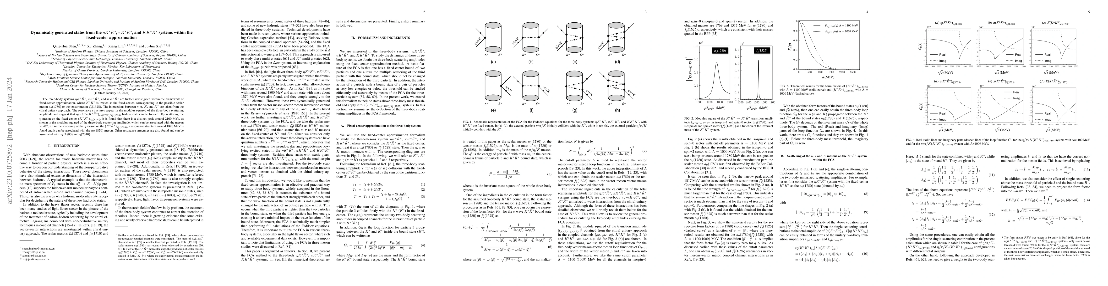This paper investigates dynamically generated states in $\eta K^*\bar{K}^*$, $\pi K^*\bar{K}^*$, and $K K^*\bar{K}^*$ systems using the fixed-center approximation. Resonances are identified in the scattering amplitudes, suggesting the formation of hadron states like $\pi(2070)$, $\eta_2(1870)$, $\pi_2(1880)$, and $\eta(2010)$.