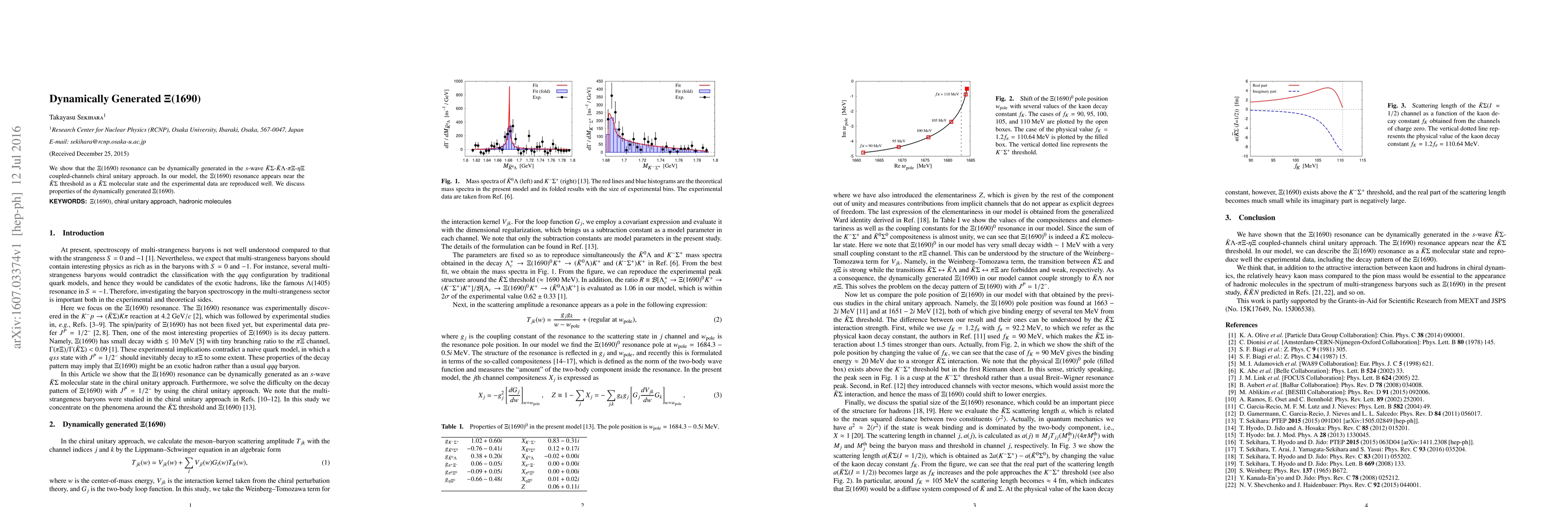 This paper demonstrates that the $\Xi (1690)$ resonance is dynamically generated near the $\bar{K} \Sigma$ threshold in a coupled-channels chiral unitary approach, appearing as a $\bar{K} \Sigma$ molecular state, and accurately reproduces experimental data. The study discusses the properties of this dynamically generated resonance.