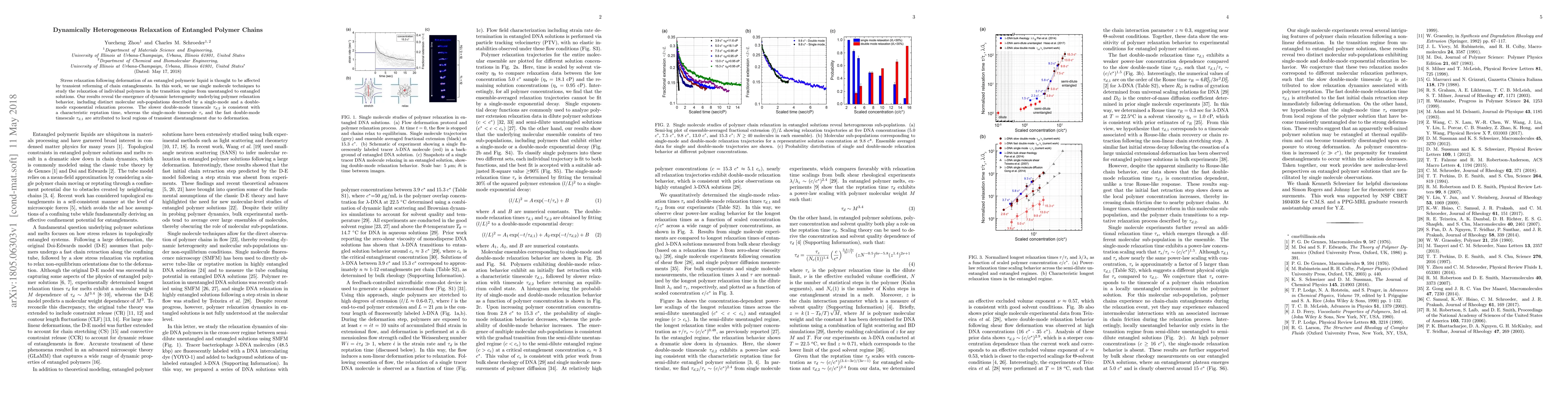 Stress relaxation following deformation of an entangled polymeric liquid is thought to be affected by transient reforming of chain entanglements. In this work, we use single molecule techniques to study the relaxation of individual polymers in the transition regime from unentangled to entangled solutions. Our results reveal the emergence of dynamic heterogeneity underlying polymer relaxation behavior, including distinct molecular sub-populations described by a single-mode and a double-mode exponential relaxation process. The slower double-mode timescale $\tau_{d,2}$ is consistent with a characteristic reptation time, whereas the single-mode timescale $\tau_s$ and the fast double-mode timescale $\tau_{d,1}$ are attributed to local regions of transient disentanglement due to deformation.