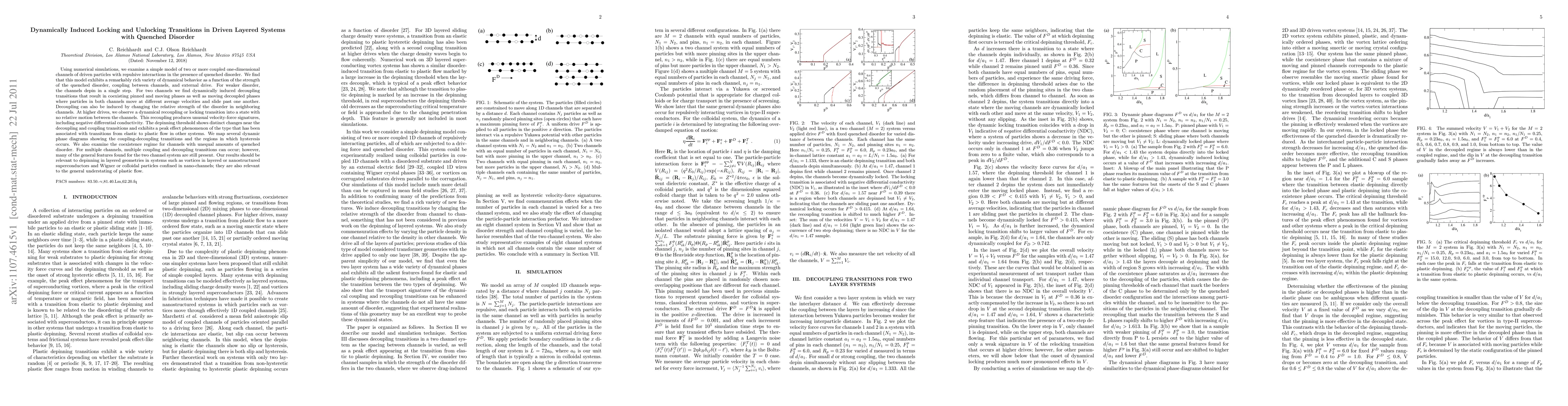 This paper uses numerical simulations to study a model of driven particles in coupled channels with quenched disorder, revealing complex dynamical behaviors including decoupling transitions, recoupling, and unusual velocity-force signatures. The findings highlight the impact of disorder strength, channel coupling, and drive on depinning thresholds and phase transitions, with implications for layered systems like superconductors and colloidal particles.