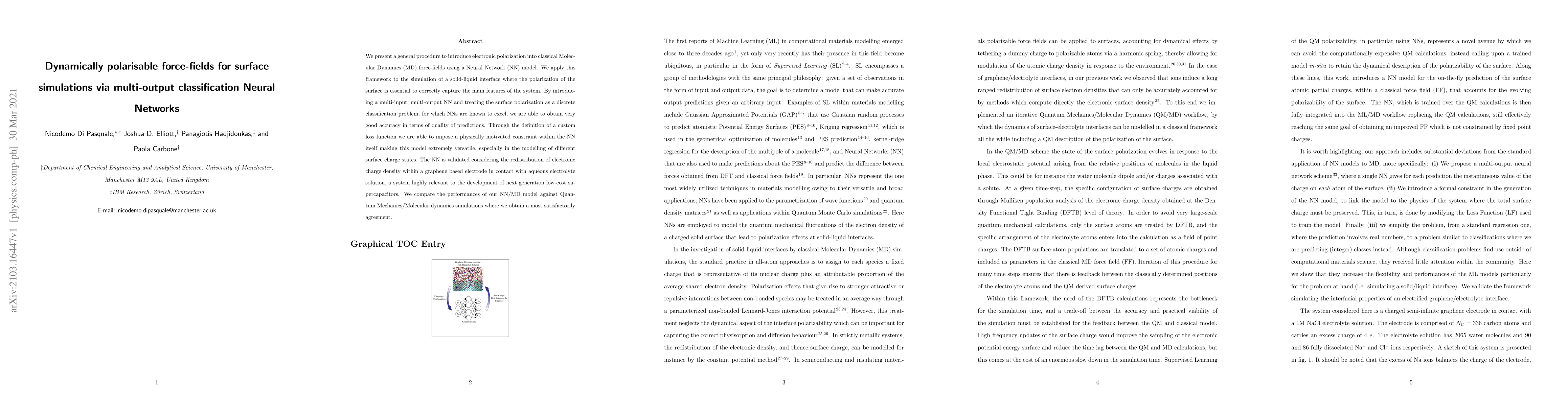 We present a general procedure to introduce electronic polarization into classical Molecular Dynamics (MD) force-fields using a Neural Network (NN) model. We apply this framework to the simulation of a solid-liquid interface where the polarization of the surface is essential to correctly capture the main features of the system. By introducing a multi-input, multi-output NN and treating the surface polarization as a discrete classification problem, for which NNs are known to excel, we are able to obtain very good accuracy in terms of quality of predictions. Through the definition of a custom loss function we are able to impose a physically motivated constraint within the NN itself making this model extremely versatile, especially in the modelling of different surface charge states. The NN is validated considering the redistribution of electronic charge density within a graphene based electrode in contact with aqueous electrolyte solution, a system highly relevant to the development of next generation low-cost supercapacitors. We compare the performances of our NN/MD model against Quantum Mechanics/Molecular dynamics simulations where we obtain a most satisfactorily agreement.