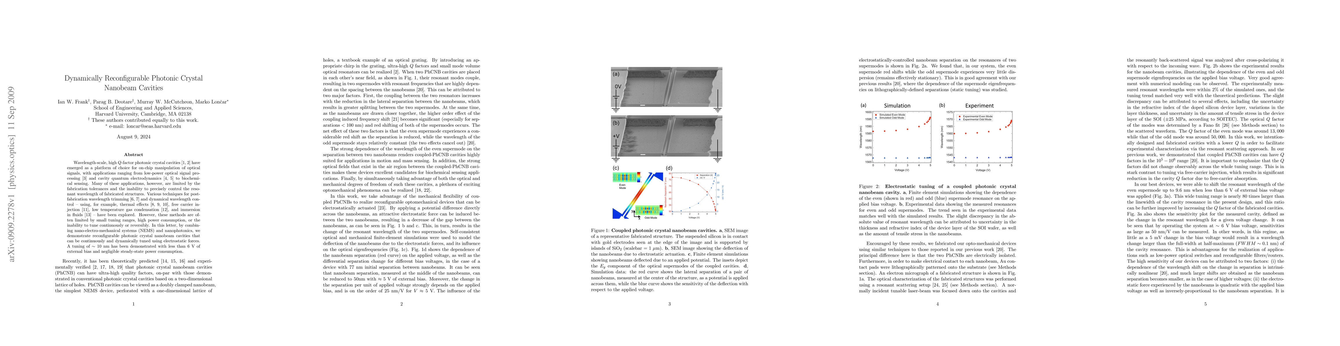 This paper presents dynamically reconfigurable photonic crystal nanobeam cavities that utilize nano-electro-mechanical systems (NEMS) for continuous tuning of resonant wavelengths using electrostatic forces, achieving a tuning range of ~10 nm with minimal power consumption and low external bias. This innovation addresses limitations in existing post-fabrication wavelength control methods.