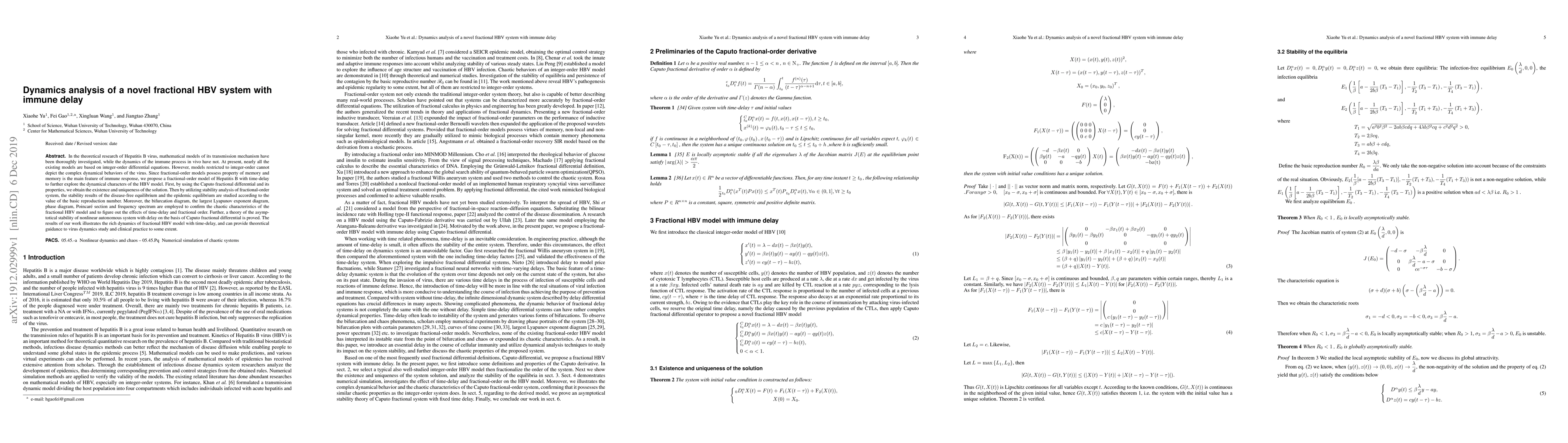 In the theoretical research of Hepatitis B virus, mathematical models of its transmission mechanism have been thoroughly investigated, while the dynamics of the immune process in vivo have not. At present, nearly all the existing models are based on integer-order differential equations. However, models restricted to integer-order cannot depict the complex dynamical behaviors of the virus. Since fractional-order models possess property of memory and memory is the main feature of immune response, we propose a fractional-order model of Hepatitis B with time-delay to further explore the dynamical characters of the HBV model. First, by using the Caputo fractional differential and its properties, we obtain the existence and uniqueness of the solution. Then by utilizing stability analysis of fractional-order system, the stability results of the disease-free equilibrium and the epidemic equilibrium are studied according to the value of the basic reproduction number. Moreover, the bifurcation diagram, the largest Lyapunov exponent diagram, phase diagram, Poincar\'e section and frequency spectrum are employed to confirm the chaotic characteristics of the fractional HBV model and to figure out the effects of time-delay and fractional order. Further, a theory of the asymptotical stability of nonlinear autonomous system with delay on the basis of Caputo fractional differential is proved. The results of our work illustrates the rich dynamics of fractional HBV model with time-delay, and can provide theoretical guidance to virus dynamics study and clinical practice to some extent.