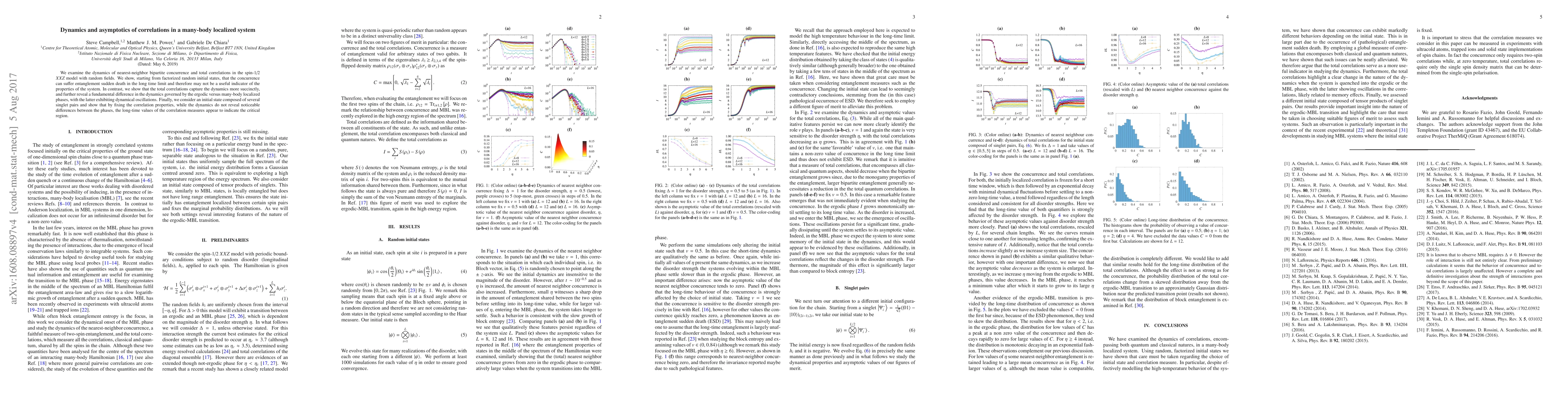 This study examines correlations in a many-body localized system and finds that total correlations are more informative than concurrence about the system's dynamics, revealing distinct behaviors between ergodic and many-body localized phases.
