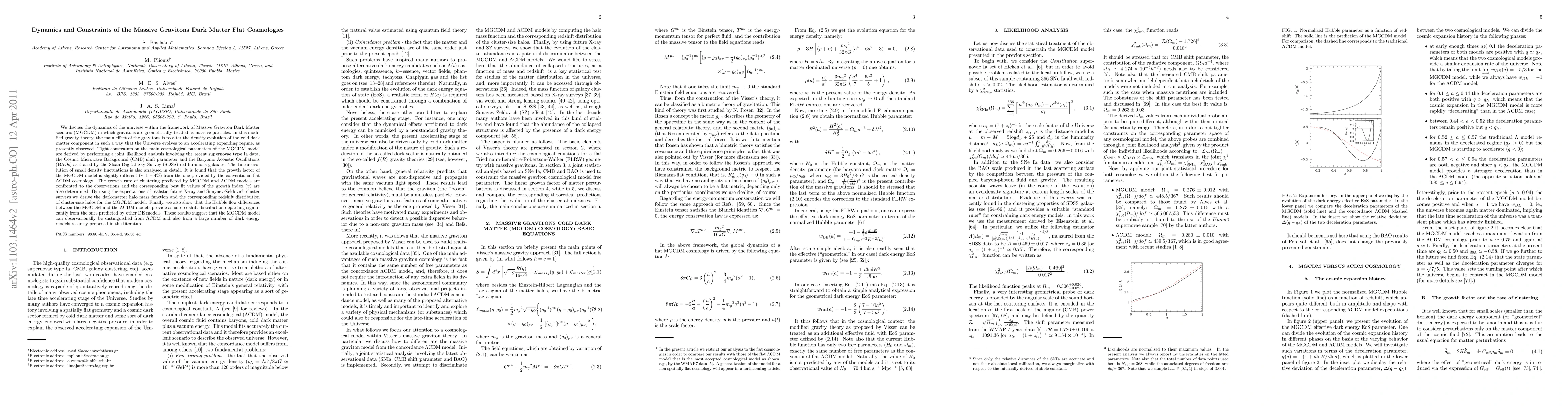 We discuss the dynamics of the universe within the framework of Massive Graviton Dark Matter scenario (MGCDM) in which gravitons are geometrically treated as massive particles. In this modified gravity theory, the main effect of the gravitons is to alter the density evolution of the cold dark matter component in such a way that the Universe evolves to an accelerating expanding regime, as presently observed. Tight constraints on the main cosmological parameters of the MGCDM model are derived by performing a joint likelihood analysis involving the recent supernovae type Ia data, the Cosmic Microwave Background (CMB) shift parameter and the Baryonic Acoustic Oscillations (BAOs) as traced by the Sloan Digital Sky Survey (SDSS) red luminous galaxies. The linear evolution of small density fluctuations is also analysed in detail. It is found that the growth factor of the MGCDM model is slightly different ($\sim1-4%$) from the one provided by the conventional flat $\Lambda$CDM cosmology. The growth rate of clustering predicted by MGCDM and $\Lambda$CDM models are confronted to the observations and the corresponding best fit values of the growth index ($\gamma$) are also determined. By using the expectations of realistic future X-ray and Sunyaev-Zeldovich cluster surveys we derive the dark-matter halo mass function and the corresponding redshift distribution of cluster-size halos for the MGCDM model. Finally, we also show that the Hubble flow differences between the MGCDM and the $\Lambda$CDM models provide a halo redshift distribution departing significantly from the ones predicted by other DE models. These results suggest that the MGCDM model can observationally be distinguished from $\Lambda$CDM and also from a large number of dark energy models recently proposed in the literature.