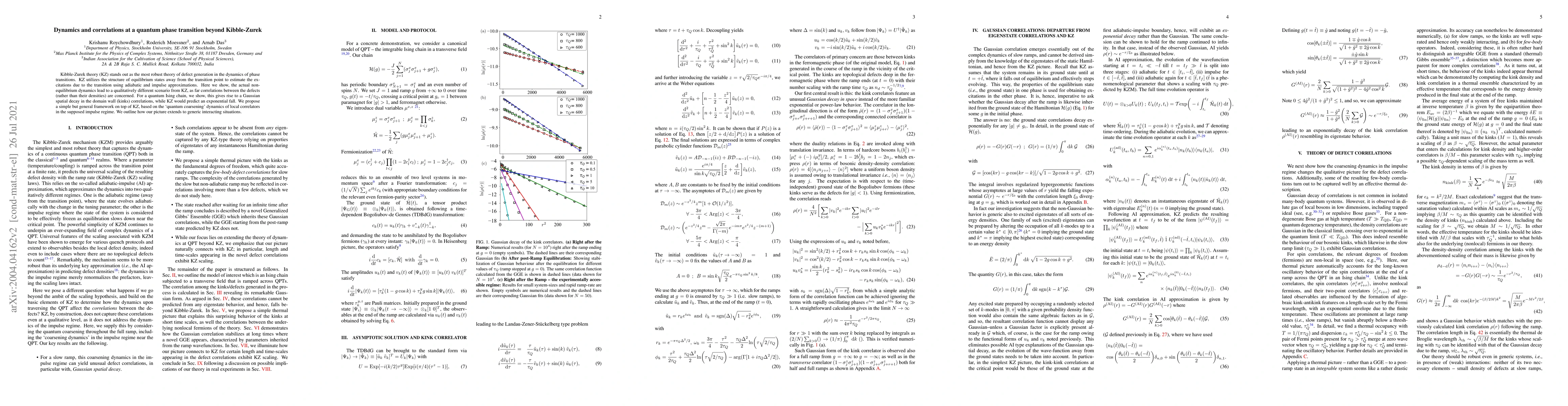 Researchers challenge Kibble-Zurek theory with new findings on quantum phase transitions, revealing a different scenario for correlations between defects in nonequilibrium dynamics. They propose a framework that predicts a Gaussian spatial decay in domain wall correlations.