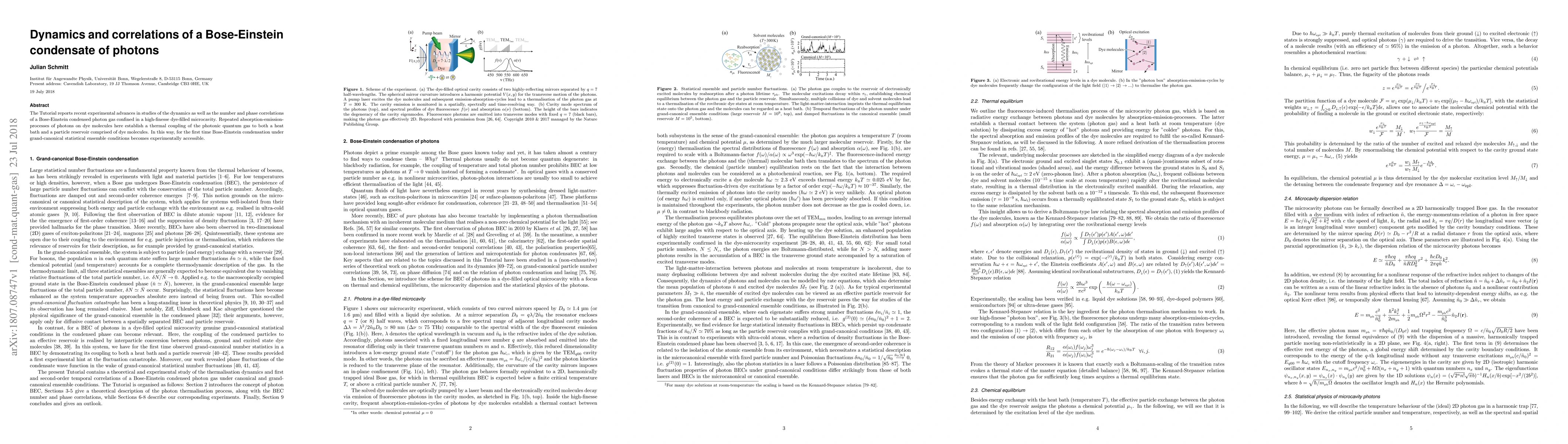 The Tutorial reports recent experimental advances in studies of the dynamics as well as the number and phase correlations of a Bose-Einstein condensed photon gas confined in a high-finesse dye-filled microcavity. Repeated absorption-emission-processes of photons on dye molecules here establish a thermal coupling of the photonic quantum gas to both a heat bath and a particle reservoir comprised of dye molecules. In this way, for the first time Bose-Einstein condensation under grand-canonical statistical ensemble conditions becomes experimentally accessible.