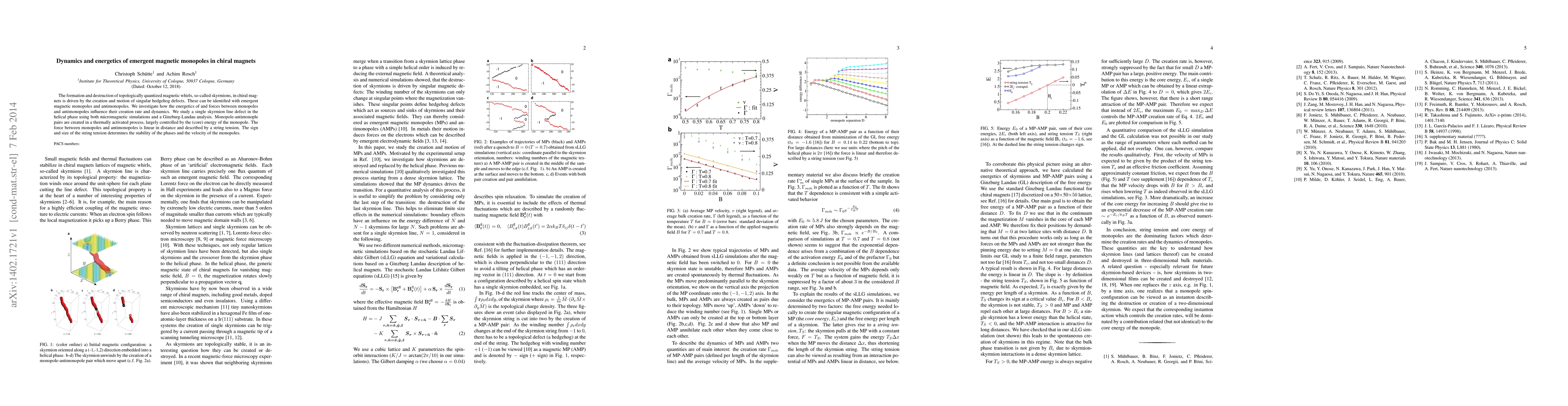 The paper investigates the creation and dynamics of magnetic monopoles and antimonopoles in chiral magnets, specifically focusing on skyrmions. It finds that these monopoles are generated thermally and interact via a distance-dependent force characterized by a string tension, which influences their stability and movement.