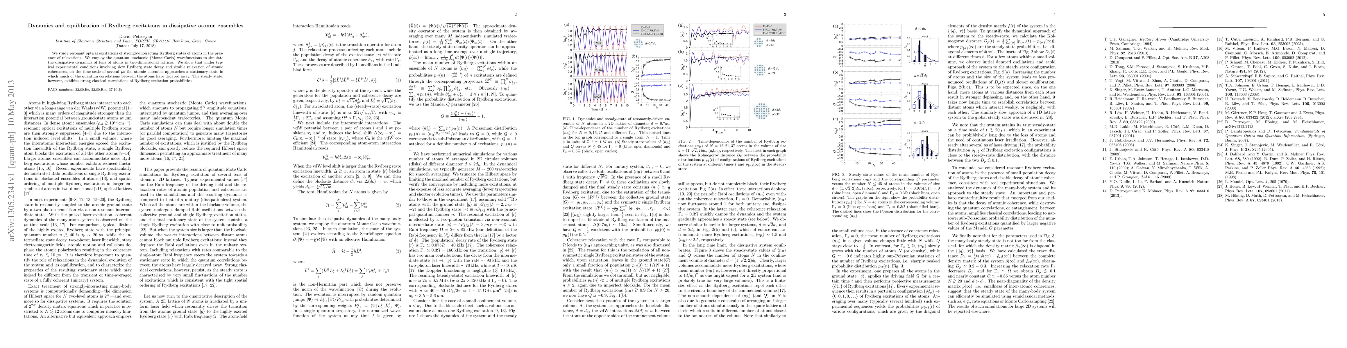 This paper investigates the dynamics of Rydberg excitations in atomic ensembles under optical excitation and relaxation, using quantum stochastic simulations. It finds that despite quantum correlations decaying, the system reaches a steady state characterized by strong classical correlations in Rydberg excitation probabilities.