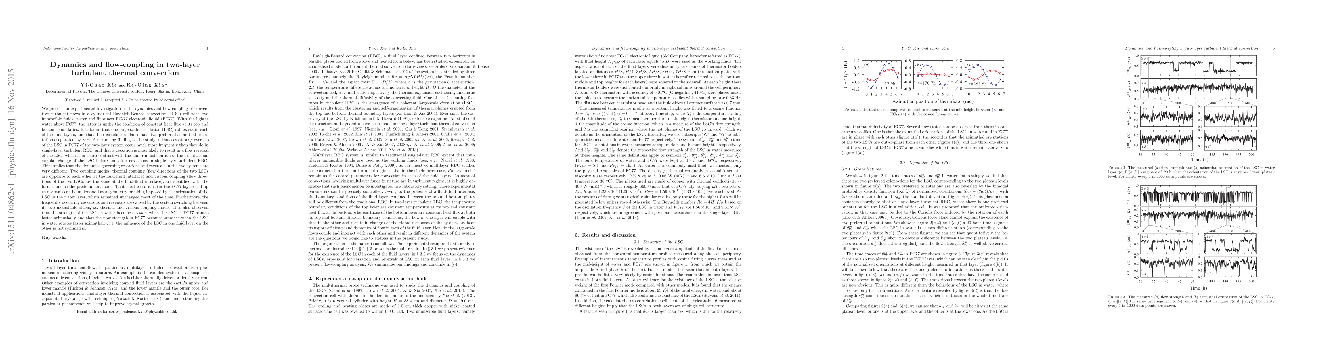 Researchers studied two-layer turbulent thermal convection in a cylindrical cell with water and FC-77 fluids, finding that large-scale circulation rolls exist in both layers and their behavior is influenced by coupling modes of thermal and viscous interactions.