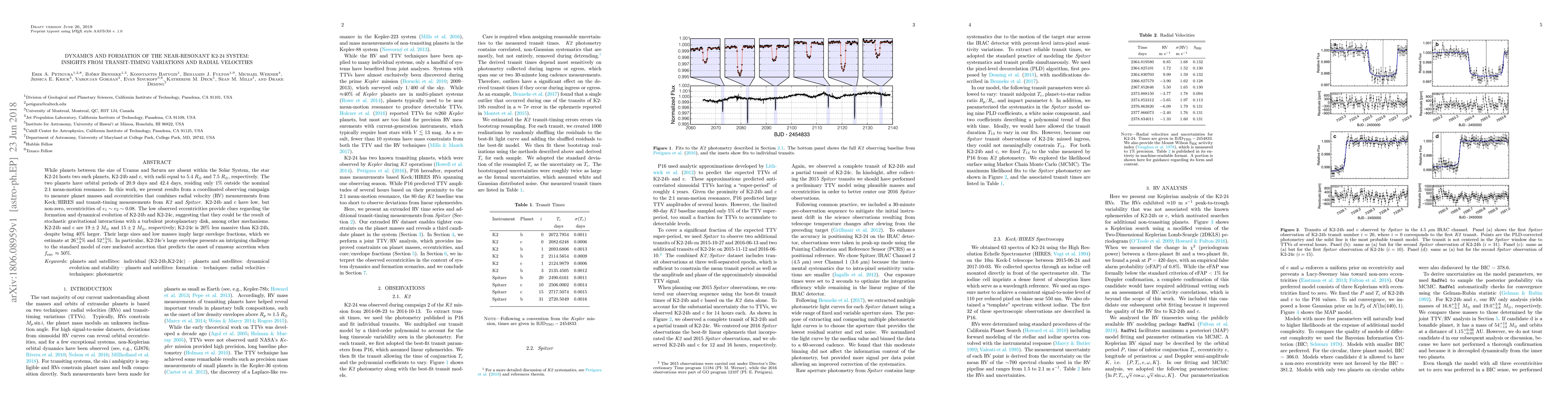 This study investigates the K2-24 system, home to two large planets, K2-24b and c, nearly in a 2:1 mean-motion resonance. Using combined radial velocity and transit-timing data, the research finds low eccentricities and masses, suggesting a complex formation history involving gravitational interactions with a protoplanetary disk.