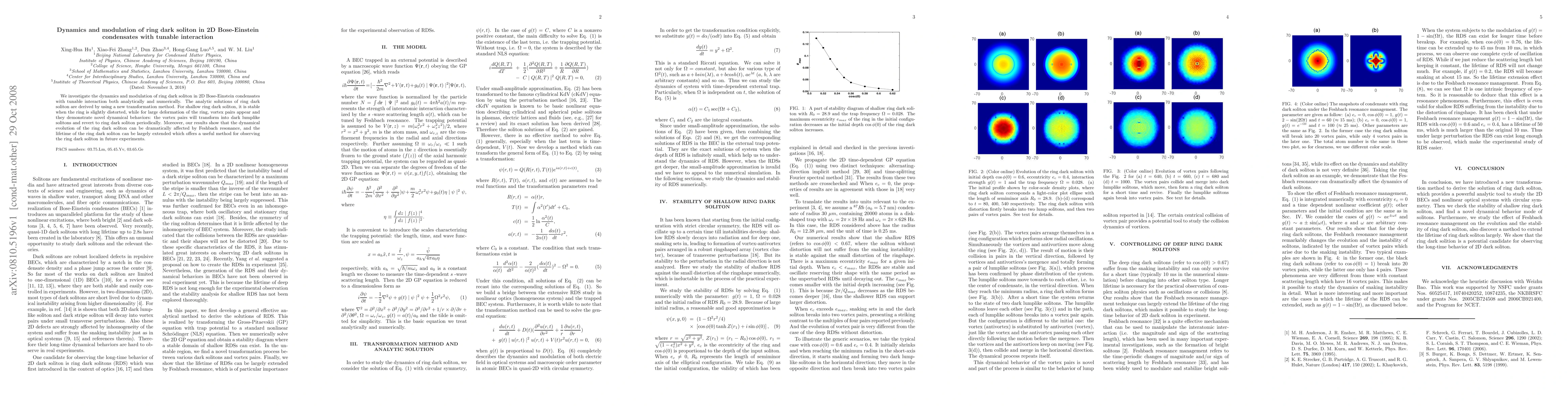 This paper investigates the dynamics and modulation of ring dark solitons in 2D Bose-Einstein condensates with tunable interactions, deriving analytic solutions via a new transformation method. The study reveals that shallow solitons remain stable but large deformations lead to vortex pair formation, which periodically transforms into dark lumplike solitons and reverts to the ring soliton, with Feshbach resonance significantly extending the soliton's lifetime.