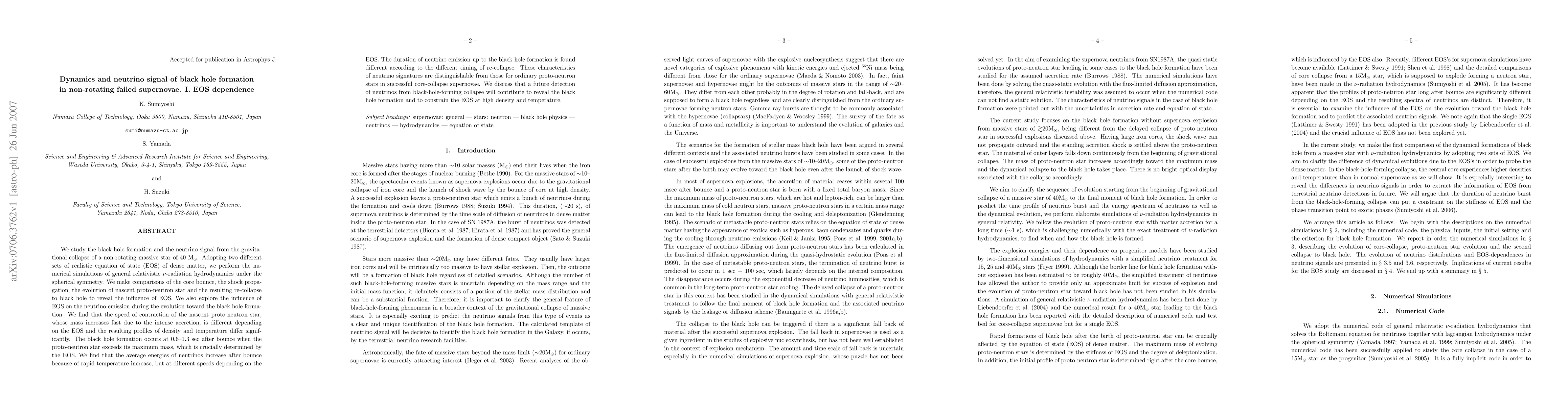 This paper investigates black hole formation and neutrino signals in non-rotating failed supernovae using two different equations of state (EOS). The results show that the EOS significantly influences the core bounce, shock propagation, and neutrino emission, with varying black hole formation times and neutrino energy profiles depending on the EOS.