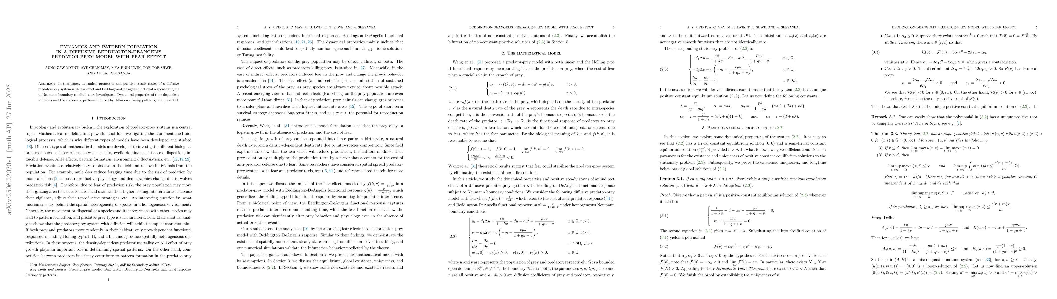 This research explores a predator-prey model incorporating fear effect and Beddington-DeAngelis response, under Neumann boundary conditions. It examines dynamical properties, steady states, and diffusion-induced patterns, providing insights into complex ecological interactions.