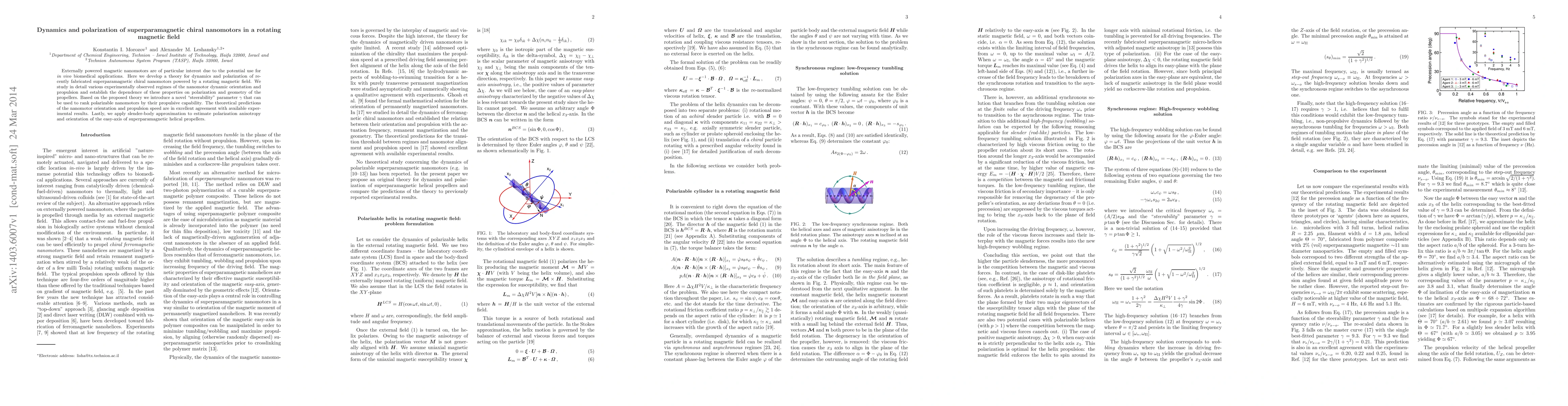 Externally powered magnetic nanomotors are of particular interest due to the potential use for \emph{in vivo} biomedical applications. Here we develop a theory for dynamics and polarization of recently fabricated superparamagnetic chiral nanomotors powered by a rotating magnetic field. We study in detail various experimentally observed regimes of the nanomotor dynamic orientation and propulsion and establish the dependence of these properties on polarization and geometry of the propellers. Based on the proposed theory we introduce a novel "steerability" parameter $\gamma$ that can be used to rank polarizable nanomotors by their propulsive capability. The theoretical predictions of the nanomotor orientation and propulsion speed are in excellent agreement with available experimental results. Lastly, we apply slender-body approximation to estimate polarization anisotropy and orientation of the easy-axis of superparamagnetic helical propellers.