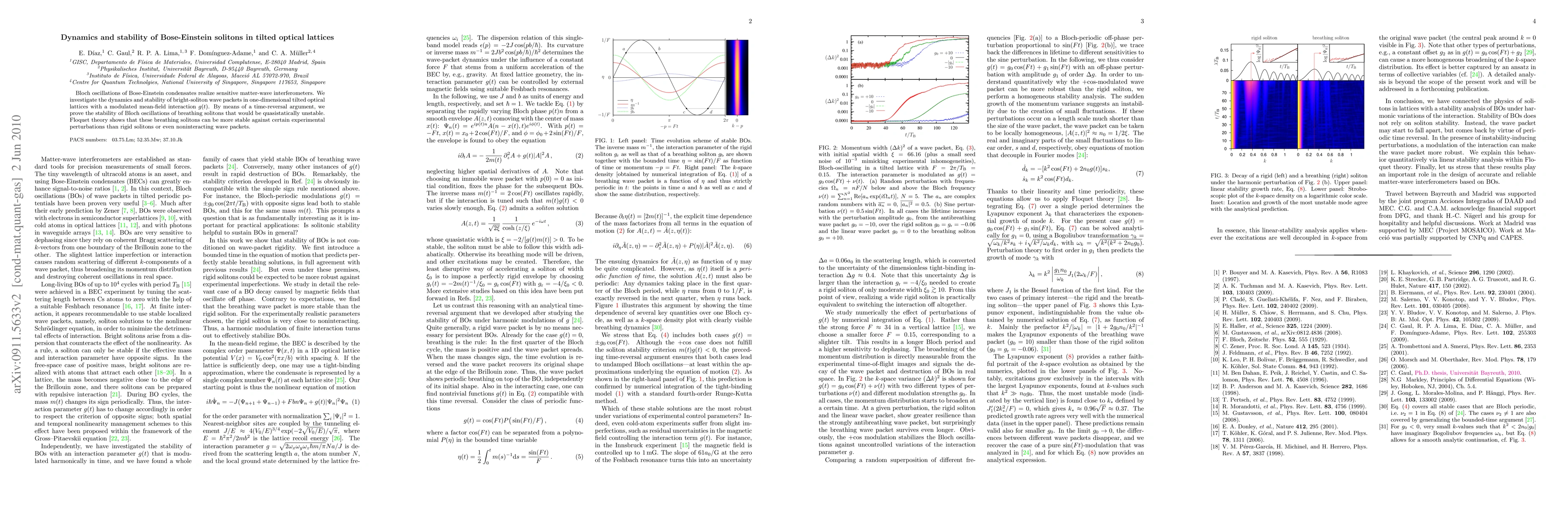 Bloch oscillations of Bose-Einstein condensates realize sensitive matter-wave interferometers. We investigate the dynamics and stability of bright-soliton wave packets in one-dimensional tilted optical lattices with a modulated mean-field interaction $g(t)$. By means of a time-reversal argument, we prove the stability of Bloch oscillations of breathing solitons that would be quasistatically unstable. Floquet theory shows that these breathing solitons can be more stable against certain experimental perturbations than rigid solitons or even non-interacting wave packets.