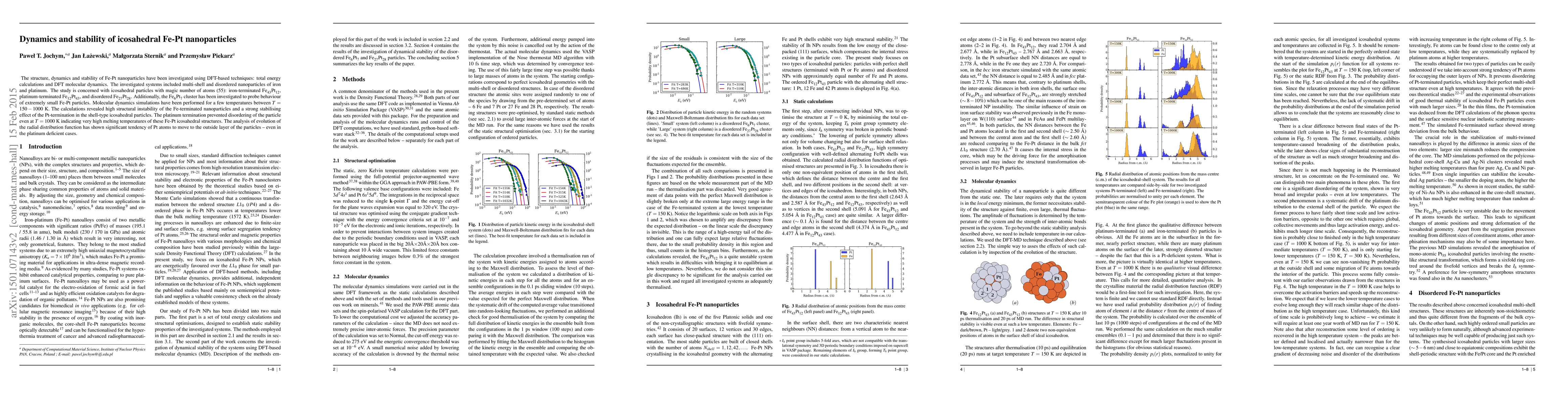 This study investigates the structure, dynamics, and stability of icosahedral Fe-Pt nanoparticles using DFT-based techniques, revealing high structural instability in Fe-terminated particles and strong stabilization by Pt-termination, which prevents disordering even at high temperatures.