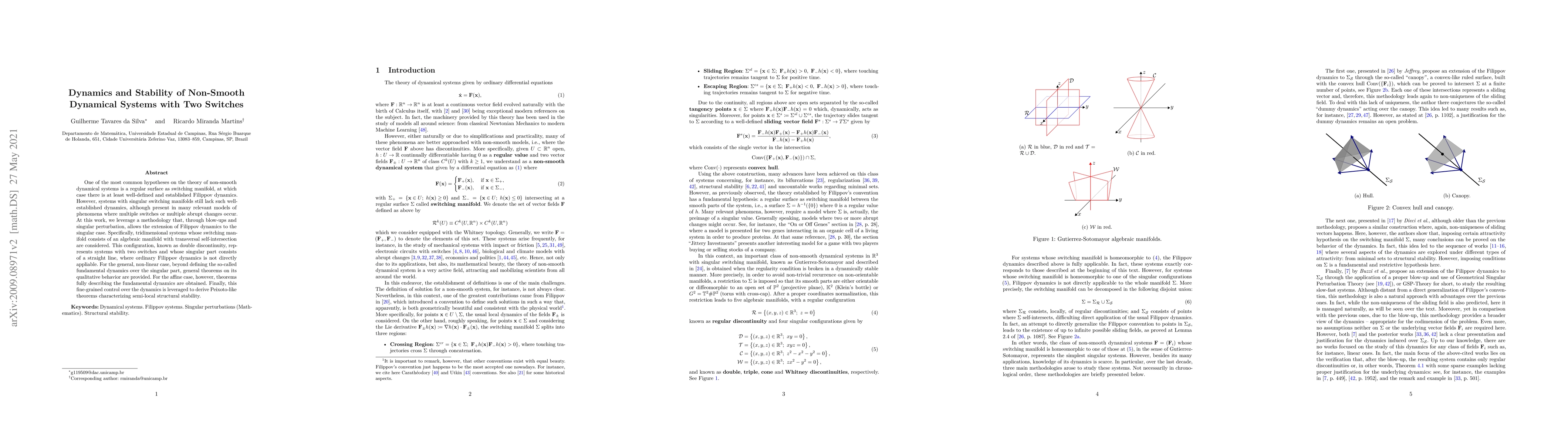 This paper introduces a methodology to extend Filippov dynamics to non-smooth systems with singular switching manifolds, specifically those with double discontinuities or two switches. It defines fundamental dynamics for non-linear and affine cases, and provides stability theorems akin to Peixoto's theorem for semi-local structural stability.