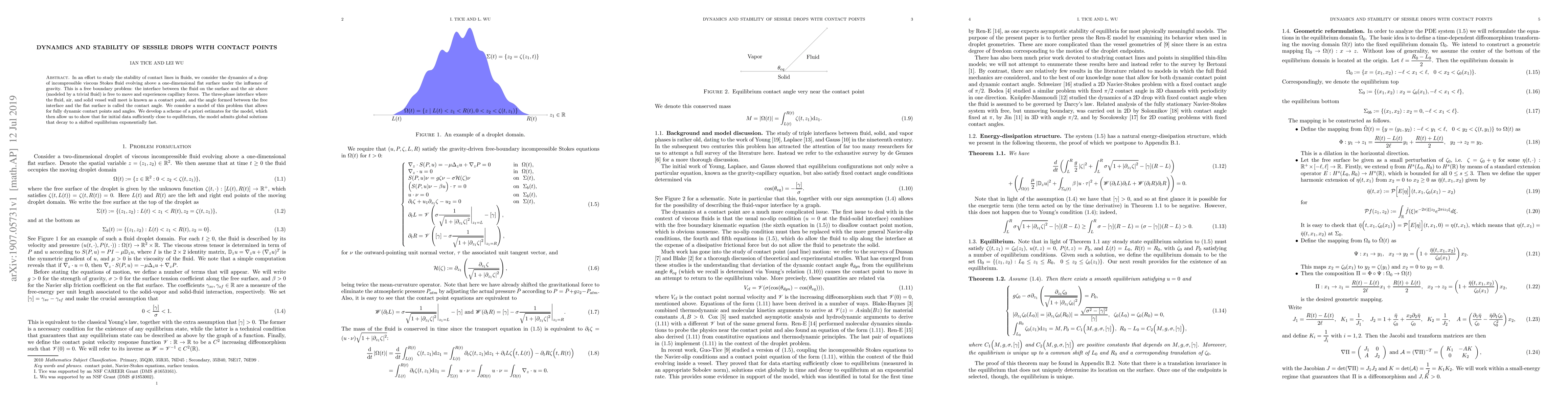 A study investigates the stability of a drop on a surface under gravity, showing that for certain initial conditions, solutions decay to equilibrium exponentially fast.