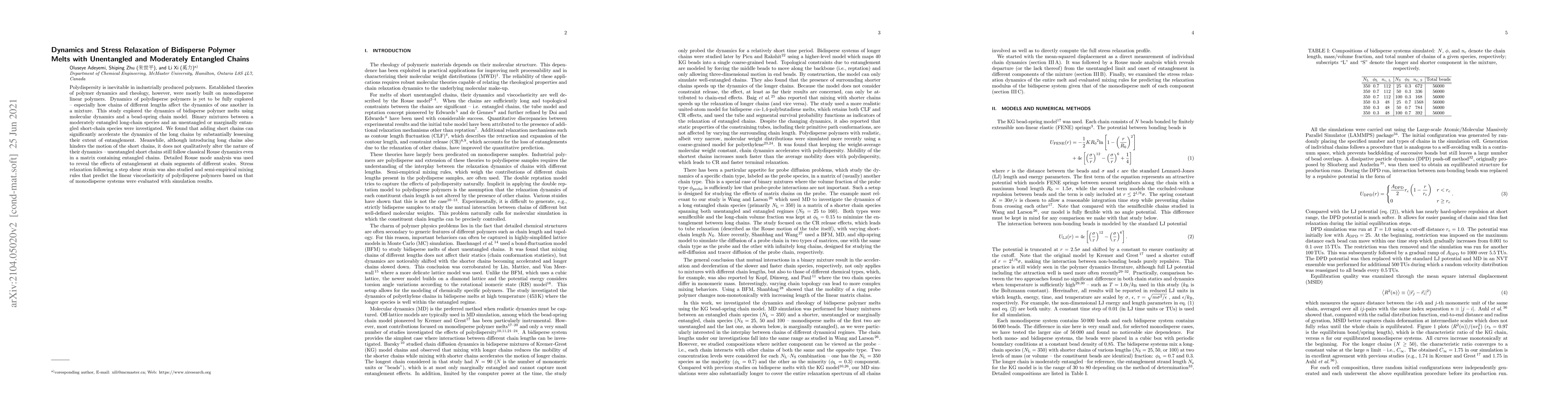 This study investigates the dynamics and stress relaxation of bidisperse polymer melts using molecular dynamics simulations, finding that short chains accelerate the dynamics of long chains by reducing their entanglement. The short chains maintain Rouse dynamics despite being in a matrix of entangled chains.