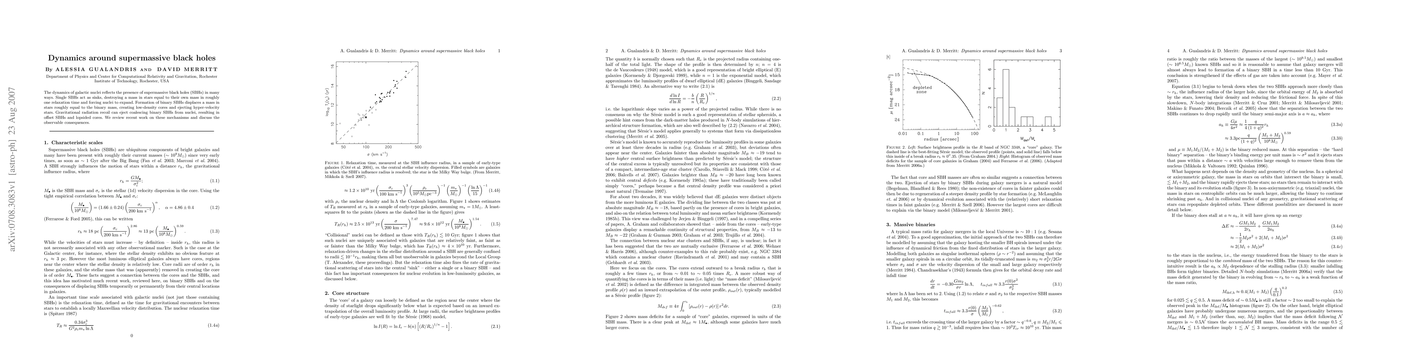 The dynamics of galactic nuclei reflects the presence of supermassive black holes (SBHs) in many ways. Single SBHs act as sinks, destroying a mass in stars equal to their own mass in roughly one relaxation time and forcing nuclei to expand. Formation of binary SBHs displaces a mass in stars roughly equal to the binary mass, creating low-density cores and ejecting hyper-velocity stars. Gravitational radiation recoil can eject coalescing binary SBHs from nuclei, resulting in offset SBHs and lopsided cores. We review recent work on these mechanisms and discuss the observable consequences.