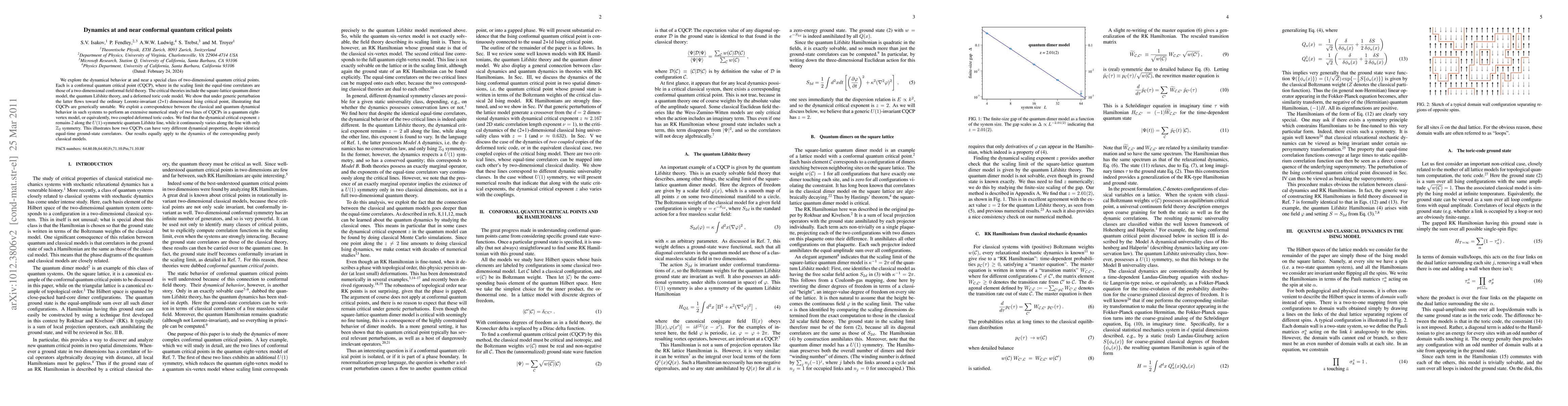 This paper investigates the dynamics near conformal quantum critical points (CQCPs) in two-dimensional systems, showing that CQCPs are generally unstable under perturbations. It finds that while the dynamical critical exponent remains 2 along a U(1)-symmetric quantum Lifshitz line, it varies along the Z_2 symmetric line, highlighting differing dynamical behaviors despite identical ground-state correlators.