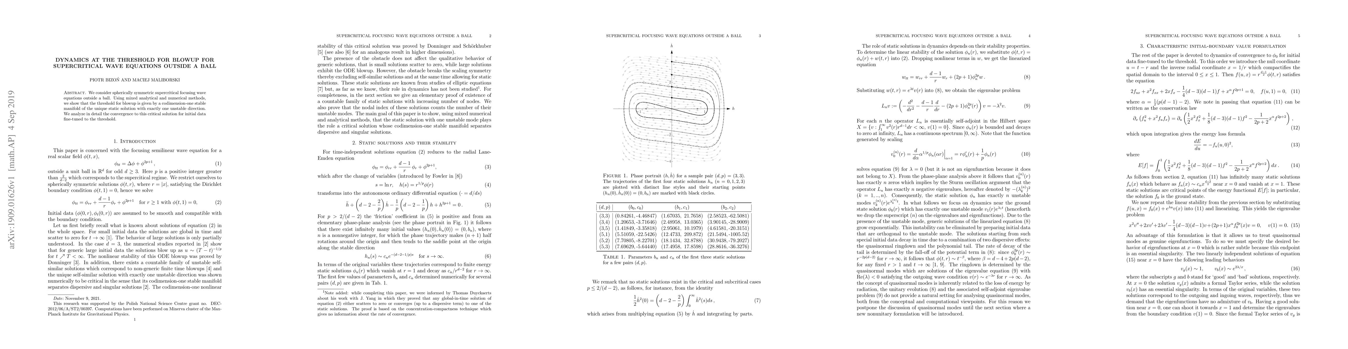 This paper investigates the dynamics of supercritical wave equations outside a ball, demonstrating that the threshold for blowup corresponds to a stable manifold with one unstable direction. The analysis combines analytical and numerical methods to study the convergence to the critical solution for finely tuned initial data.