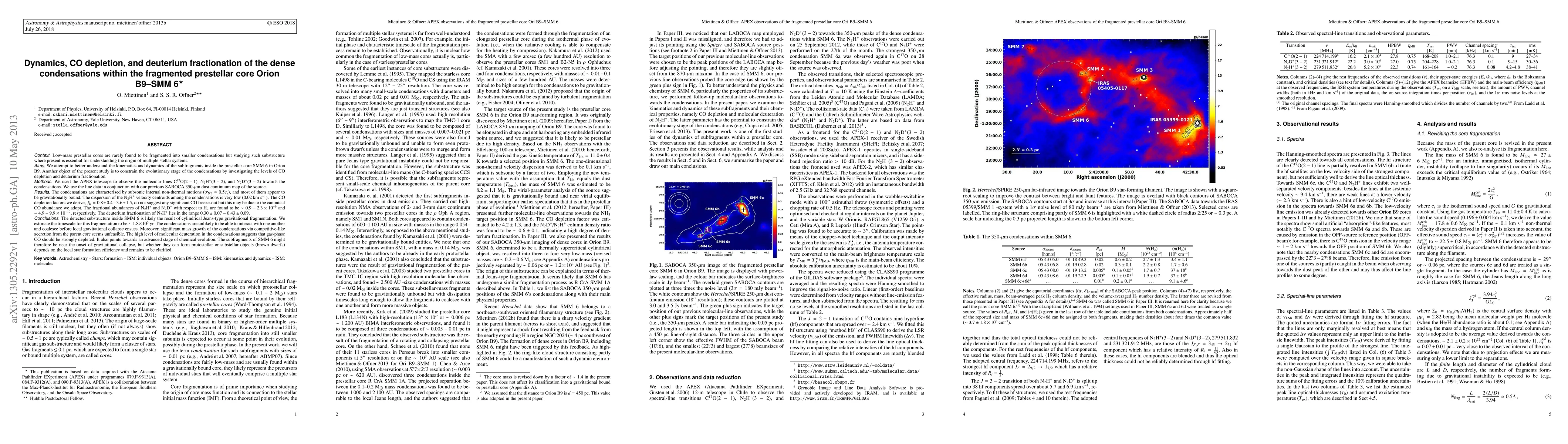 This paper reports on APEX observations of molecular lines and dust continuum in the fragmented prestellar core Orion B9-SMM 6, revealing subsonic motions, gravitational binding, and low CO depletion factors. High deuterium fractionation suggests advanced chemical evolution and potential gravitational collapse, though the formation of protostellar objects remains uncertain.