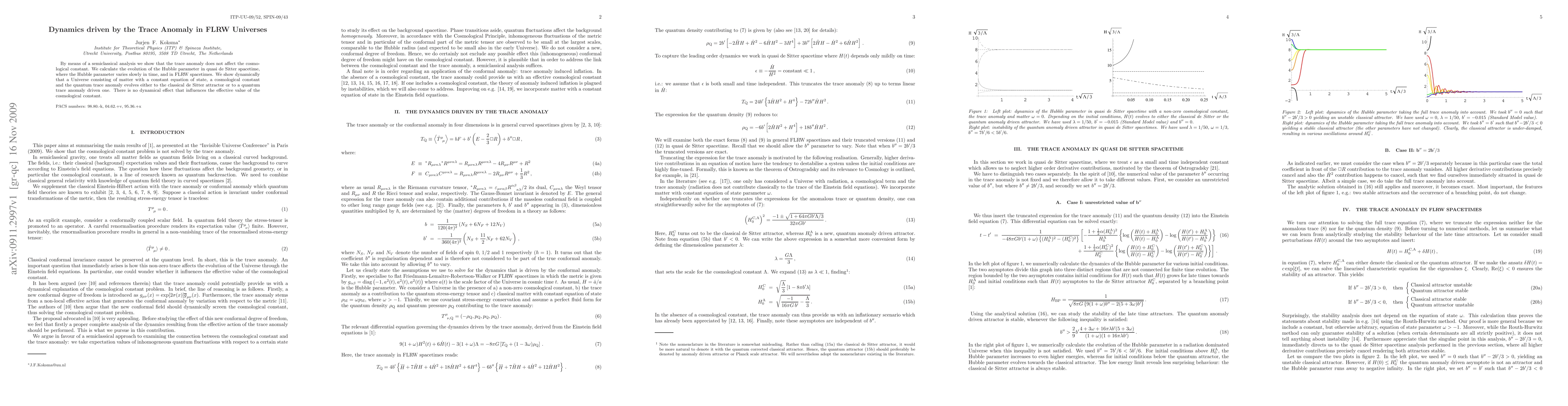 This paper demonstrates that the trace anomaly does not affect the cosmological constant and explores its role in the evolution of the Hubble parameter in FLRW spacetimes. The study finds that a universe with a constant equation of state, a cosmological constant, and the quantum trace anomaly can evolve towards either a classical de Sitter state or a trace anomaly-driven state, without influencing the effective cosmological constant.