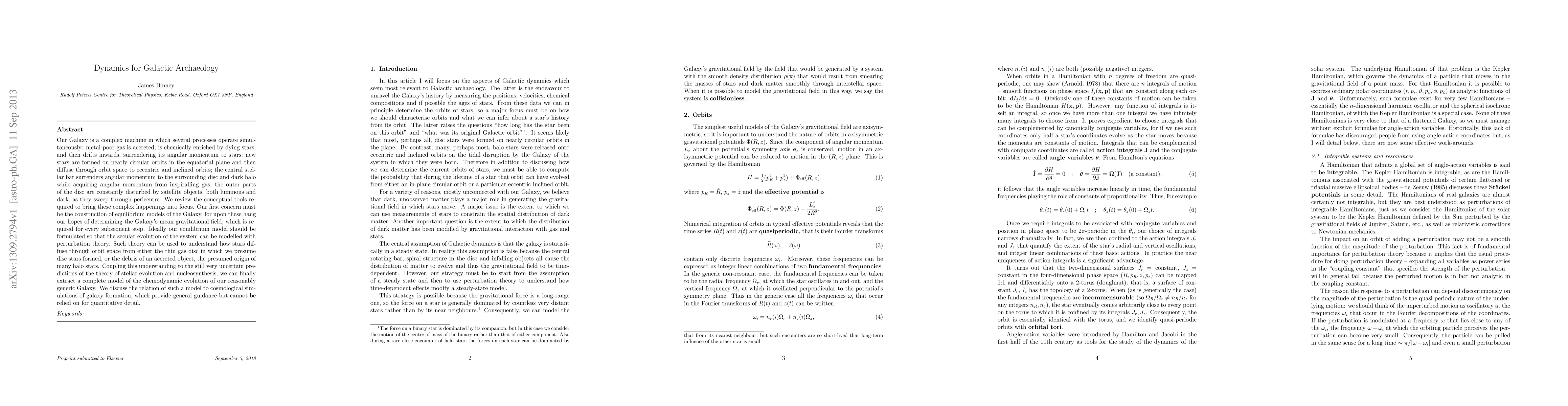 Our Galaxy is a complex machine in which several processes operate simultaneously: metal-poor gas is accreted, is chemically enriched by dying stars, and then drifts inwards, surrendering its angular momentum to stars; new stars are formed on nearly circular orbits in the equatorial plane and then diffuse through orbit space to eccentric and inclined orbits; the central stellar bar surrenders angular momentum to the surrounding disc and dark halo while acquiring angular momentum from inspiralling gas; the outer parts of the disc are constantly disturbed by satellite objects, both luminous and dark, as they sweep through pericentre. We review the conceptual tools required to bring these complex happenings into focus. Our first concern must be the construction of equilibrium models of the Galaxy, for upon these hang our hopes of determining the Galaxy's mean gravitational field, which is required for every subsequent step. Ideally our equilibrium model should be formulated so that the secular evolution of the system can be modelled with perturbation theory. Such theory can be used to understand how stars diffuse through orbit space from either the thin gas disc in which we presume disc stars formed, or the debris of an accreted object, the presumed origin of many halo stars. Coupling this understanding to the still very uncertain predictions of the theory of stellar evolution and nucleosynthesis, we can finally extract a complete model of the chemodynamic evolution of our reasonably generic Galaxy. We discuss the relation of such a model to cosmological simulations of galaxy formation, which provide general guidance but cannot be relied on for quantitative detail.