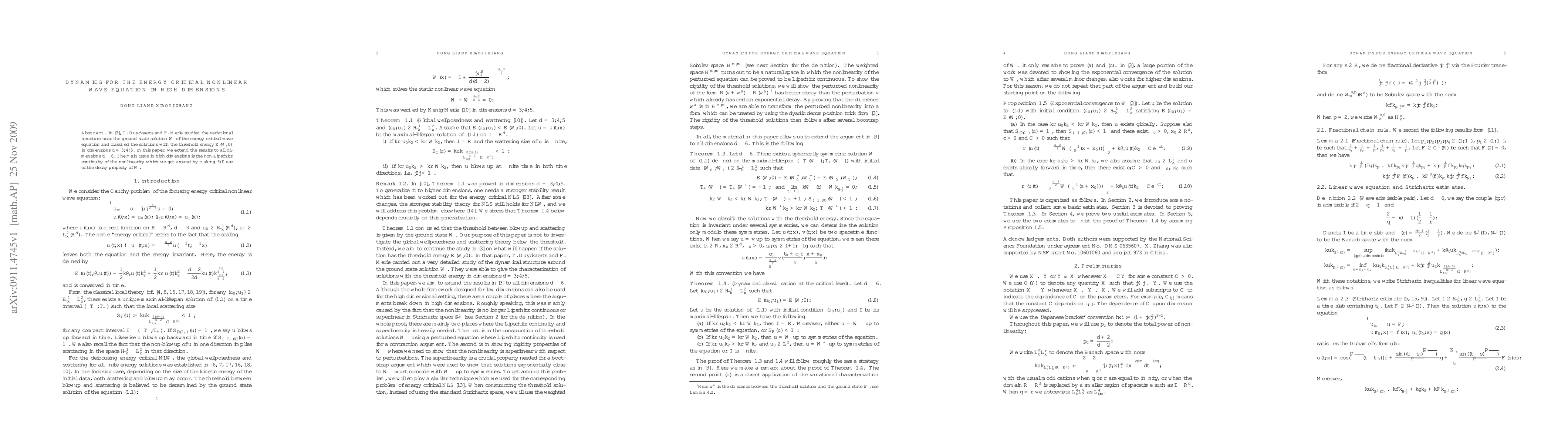 In the work by T. Duyckaerts and F. Merle, they studied the variational structure near the ground state solution $W$ of the energy critical wave equation and classified the solutions with the threshold energy $E(W,0)$ in dimensions $d=3,4,5$. In this paper, we extend the results to all dimensions $d\ge 6$. The main issue in high dimensions is the non-Lipschitz continuity of the nonlinearity which we get around by making full use of the decay property of $W$.