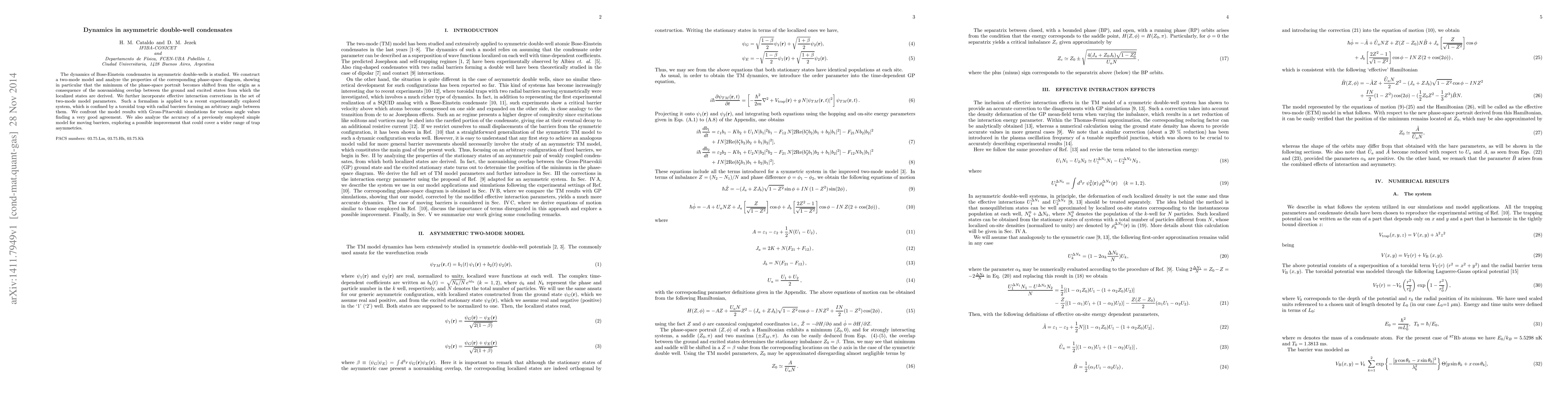The dynamics of Bose-Einstein condensates in asymmetric double-wells is studied. We construct a two-mode model and analyze the properties of the corresponding phase-space diagram, showing in particular that the minimum of the phase-space portrait becomes shifted from the origin as a consequence of the nonvanishing overlap between the ground and excited states from which the localized states are derived. We further incorporate effective interaction corrections in the set of two-mode model parameters. Such a formalism is applied to a recent experimentally explored system, which is confined by a toroidal trap with radial barriers forming an arbitrary angle between them. We confront the model results with Gross-Pitaevskii simulations for various angle values finding a very good agreement. We also analyze the accuracy of a previously employed simple model for moving barriers, exploring a possible improvement that could cover a wider range of trap asymmetries.