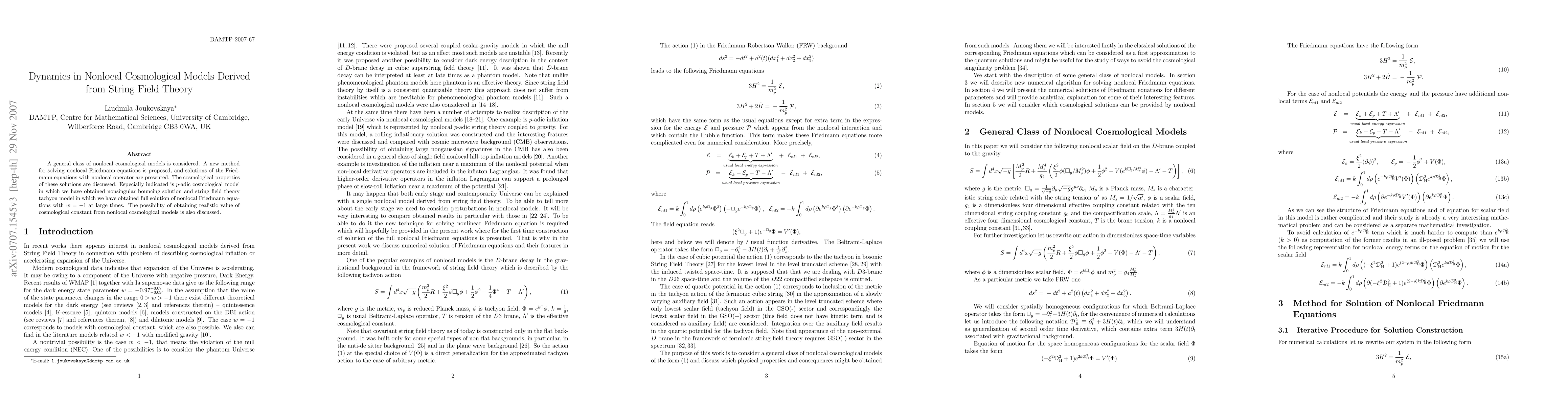 This paper proposes a new method for solving nonlocal Friedmann equations in nonlocal cosmological models derived from string field theory. It presents nonsingular bouncing solutions and full solutions with $w=-1$ at large times, discussing the potential for realistic cosmological constant values.