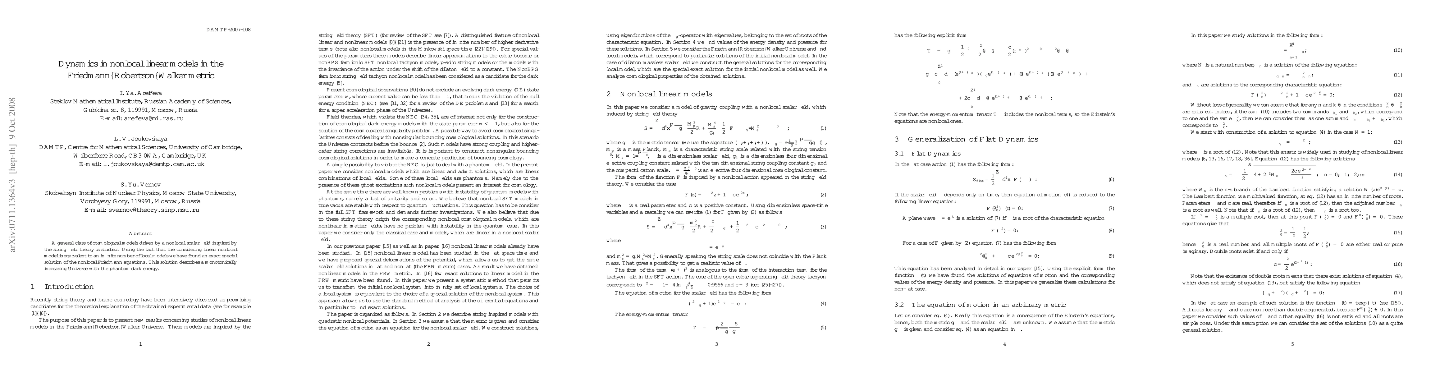 Summary: This paper explores cosmological models driven by nonlocal scalar fields, revealing an exact special solution to the nonlocal Friedmann equations that describes a monotonically increasing universe with phantom dark energy, equivalent to an infinite number of local models.